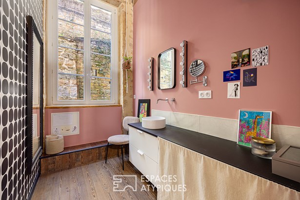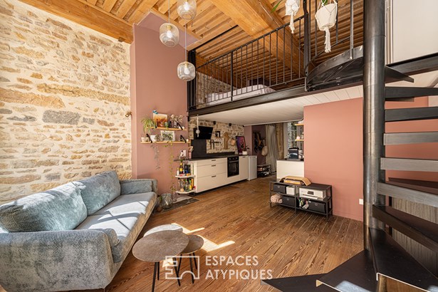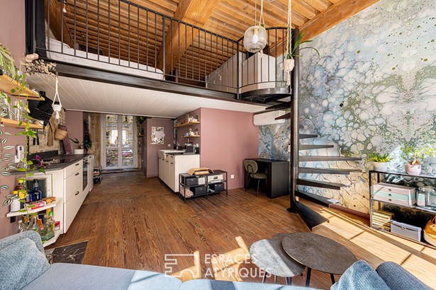 A vast mezzanine accommodates the sleeping area and overlooks the living room, creating a warm and atypical atmosphere. A truly rare asset in this sought-after area, a courtyard terrace offers a haven of peace in the heart of the city, ideal for sharing a meal, enjoying a coffee, or simply enjoying the peace and quiet. This turnkey property, where character and contemporary comfort blend harmoniously, represents an opportunity for a primary residence as well as for a rental investment project, a pied-a-terre, or a home for a child.