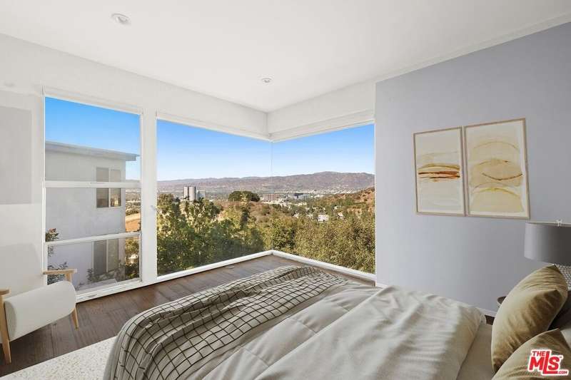 Priced to sell! Opportunity to own a Contemporary Modern 4-bed, 4-bath home with Stunning Views in the highly desirable Hollywood Hills! With sweeping mountain and city light views from nearly every room, this home offers unbeatable indoor/outdoor potential. This home is ideal for buyers ready to renovate or reimagine. The property has great bones and a layout full of potential, perfect for investors, flippers, or end-users looking to build equity in a prime location. The sun-drenched primary suite features a Carrera marble bathroom with a soaking tub and walk-in shower. Another en suite bedroom shares the level, both with spectacular views. Downstairs, a third bedroom, spacious and cozy living area, and chef's kitchen await with Electrolux appliances, quartz counters, wine fridge, and three ovens. Enjoy coffee on the large private deck, or head downstairs to a media room with 100" screen and a guest suite - great for visitors or additional rental income. The backyard is a blank canvas with room for a jacuzzi or entertainer's setup to take in the sunset views. Located near Lake Hollywood, Runyon Canyon, major studios, and top dining with easy access to the 5 and 101. Bring your imagination and your contractor to unlock the full potential of this Hollywood Hills gem. Note furniture is virtually staged. Reach out for more information!
