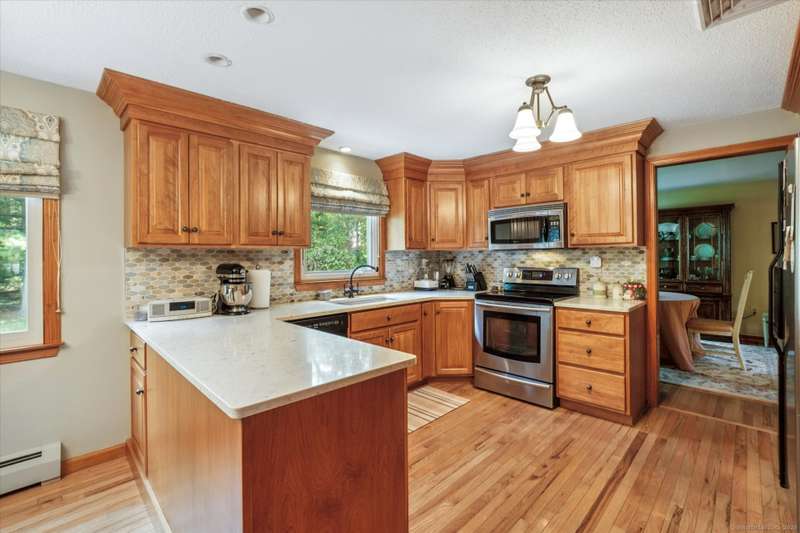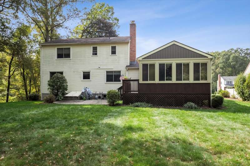 Welcome to this beautifully maintained 3-bedroom, 2.5-bath colonial perfectly situated at the end of a peaceful cul-de-sac. Pride of ownership shines throughout this single-owner home, offering a warm and inviting atmosphere from the moment you arrive. The main level features a spacious and light-filled living area, ideal for everyday living and entertaining. The kitchen offers generous cabinet space and seamlessly connects to the dining area with views of the backyard. Upstairs, you'll find three comfortable bedrooms, including a serene primary suite with a private bath and ample closet space. Step outside to enjoy the tranquil backyard that backs up to protected town land lined with mature trees-offering both privacy and a beautiful natural backdrop. Additional highlights include a convenient 2-car garage, central air, and a full basement with potential for future finishing. Located close to town amenities, schools, and major routes, this home offers the perfect blend of neighborh