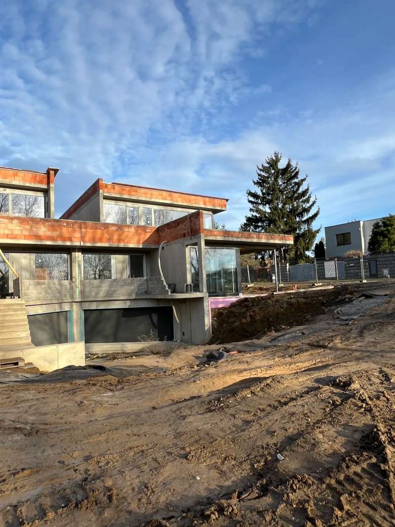 We offer a unique opportunity to purchase the completed shell construction of half of a semi-detached house in the prestigious Kunratice area of Prague 4. Nearby, there starts a forest where no further building development will occur. The new owner can flexibly finish their residence in this spacious and superiorly designed house. The building is sold in a "shell and core" condition. The house has aluminum windows, front doors, and a garage door that is 5.5m wide. The new owner can flexibly choose the interior partitions.