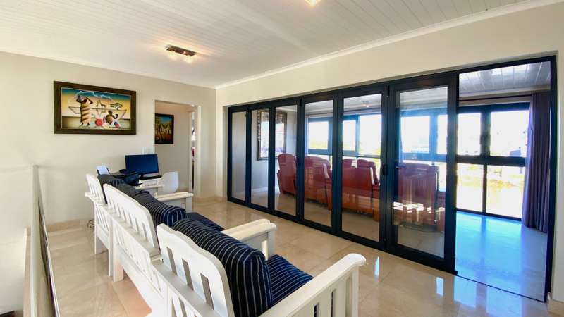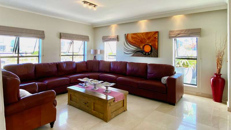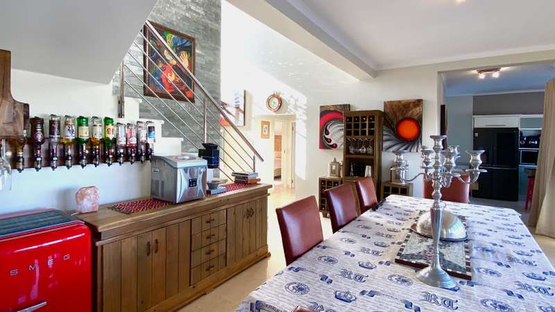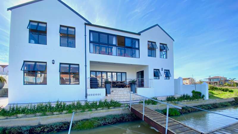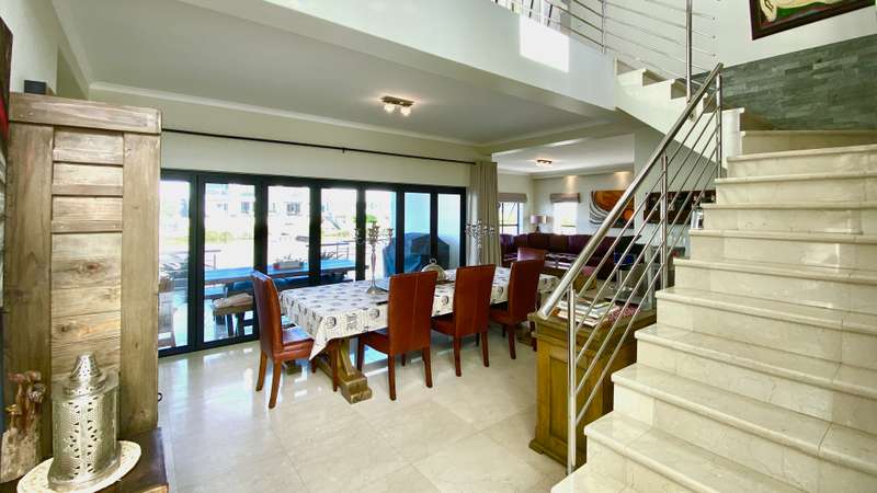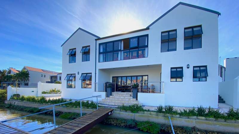 Embrace Island Living with this Dream Waterfront Home on Admiral Island Discover the ultimate Island Lifestyle in this exquisite four-bedroom waterfront residence, perfectly situated on the secure and renowned Admiral Island Estate. Nestled within the picturesque Flamingo Cove, this home boasts of direct water access and its own private jetty, inviting you to moor your boat right at your doorstep. Step inside and be greeted by a grand, double-volume entrance hall that flows seamlessly into an expansive open-plan living area. This inviting space features a dining area and a comfortable lounge, both enhanced by folding stack doors that open onto a generous outdoor stoep. The sleek, open-plan kitchen, complete with a discreet scullery, also extends to the stoep, allowing you to prepare meals while enjoying captivating views of the canal and Flamingo Cove. This magnificent home offers four well-appointed bedrooms. Upstairs, you'll find three spacious bedrooms, including an exceptionally sized main suite with a large en-suite bathroom and breathtaking waterfront vistas. The second and third upstairs bedrooms share a full bathroom. The fourth bedroom, conveniently located downstairs off the entrance hall, has access to a separate third bathroom that also serves as a guest powder room. A graceful staircase ascends to a spacious upstairs landing, providing a versatile area between the bedrooms. This leads to an enclosed balcony, perfect for a second lounge or for savouring stunning sunrises and sunsets during the warmer months. For your convenience, the double garage offers direct access into the house and ample space for a workbench, ideal for any DIY enthusiast. The garage also provides outdoor access to the courtyard on the right side of the property. Completing this idyllic setting is a private wooden jetty, perfectly positioned at the front of the property, ensuring effortless access to the water for your boating adventures. Immerse yourself in the tranquility of waterfront living, where stunning water views and the gentle passage of boats through the marina create a serene and luxurious backdrop for your daily life. Welcome home to unparalleled comfort, luxury, and the coveted waterfront lifestyle of Admiral Island. Ready to experience the Admiral Island lifestyle? Contact us today to arrange a viewing!