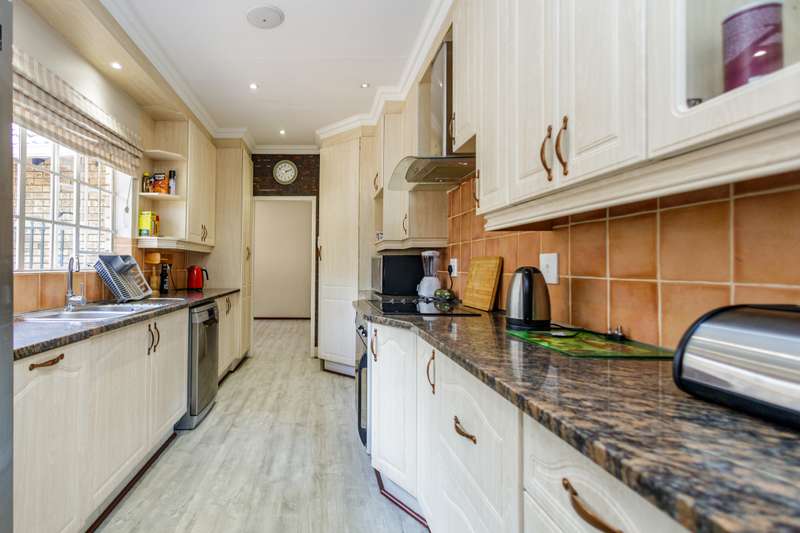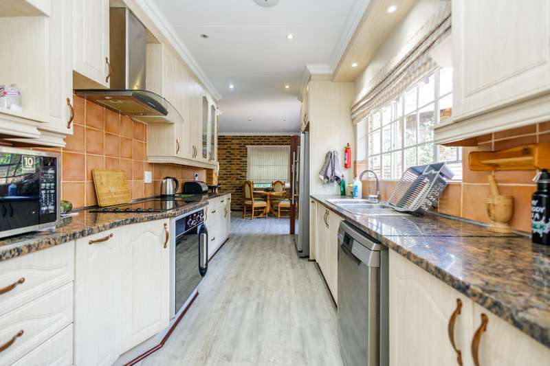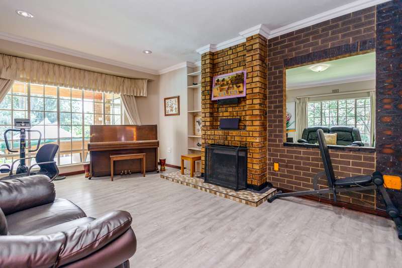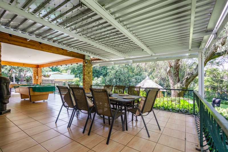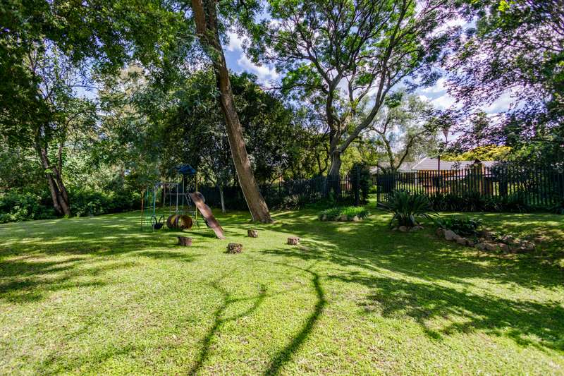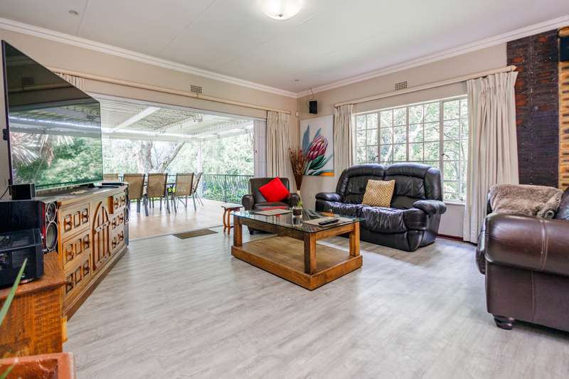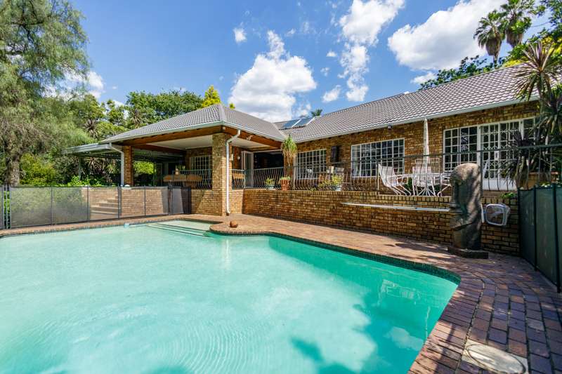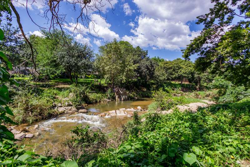 Top position family home for nature lovers With a direct private access to a river side, walking and play area for kids and adults to enjoy tranquility in a beautiful nature. Within the sought after boomed off crescent on a very large stand. Grand entrance to inter leading bar room, formal lounge (fire place), TV lounge and dining room. All opening to a double covered entertainment patio with a stunning view. 4-bedroom (MES) and two modern bathrooms. Well-equipped kitchen with granite countertops, ample cabinetry, and walk-in pantry. Large sparkling pool with kid and pet friendly removable fence. Established, lush, large private garden expending to river side and chance to enjoy “out of town” experience. In addition to the main property is self-contained cottage for any extra use. Extras: 2 x solar geysers, solar panels, inverter and back-up battery, alarm, CCTV wi-fi system, electric fence. This immaculate home needs no work done and with very low maintenance. Just move in and enjoy.