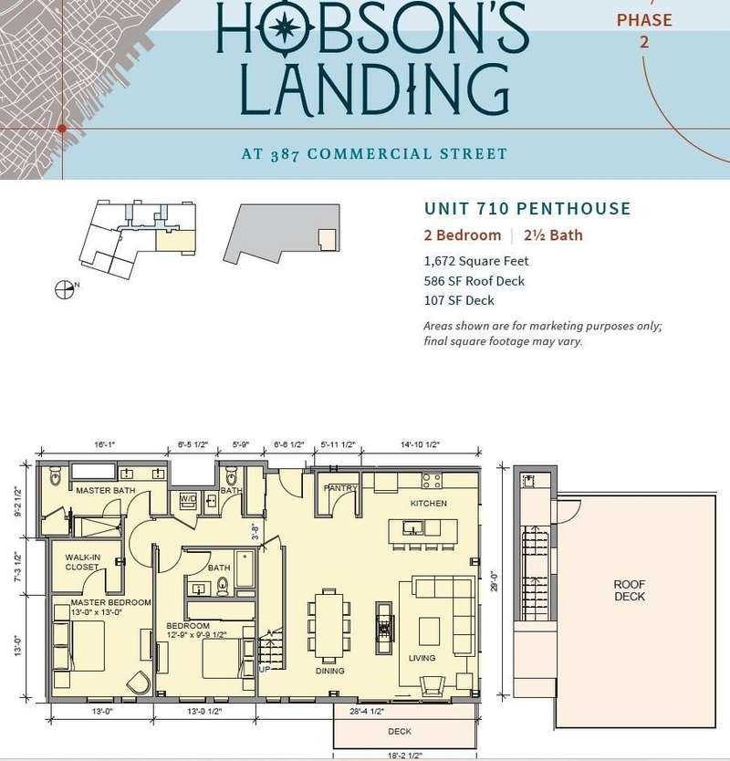 Luxury means living in one of the most desirable small cities in the country, within walking distance of award-winning restaurants, the waterfront, galleries, museums, musical venues and private marinas. Luxury means easy access to an international airport, and first-class medical facilities. Luxury means proximity to recreational activities such as hiking, skiing, boating, fishing, kayaking and canoeing. Luxury means Hobson's Landing. Phase 2, Unit 710 is one of the remaining penthouses with panoramic water views, expansive private roof decks, custom cabinetry, custom woodwork and luxurious appointments. Exceptional kitchen and baths and top of the line appliances including a 36 inch Wolf range, Subzero refrigerator, Marvel wine refrigerator. One car garage parking included with potential for adding a EV charging station. All units feature hardwood flooring throughout, 9 ft. ceilings, gas fireplace, radiant heat in primary bathroom. Amenities include lobby with concierge, clubroom with a fireplace, deck, and full kitchen, fitness room, dog wash, reservable guest suite, spacious courtyard, shared work space, Tesla and bikes. Luxury means living life the 'way it should be'!