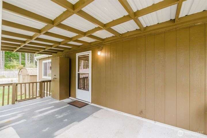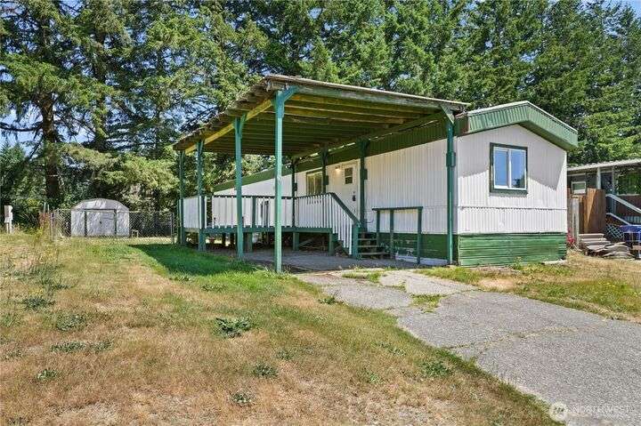 Great Place to call home! Corner lot with plenty of off street parking and visitor parking directly across the street. Updated interior includes all appliances. Sizable living space offers 2 bedrooms and a full updated bath, with italian tile tub & shower. Open kitchen has pantry area. Covered front deck and large yard. Windows have fire tint for privacy and help with keeping the home cooler on warm days. Storage shed works great for lawn equipment. Kitsap West is an all ages park with open spaces, community water and sewer. Just 15 minutes to Seattle Ferry System, and less than 20 min to PSNS.