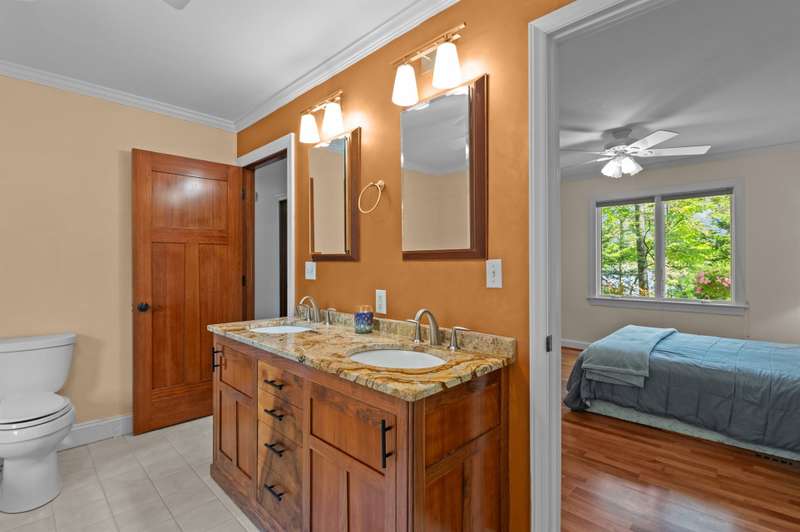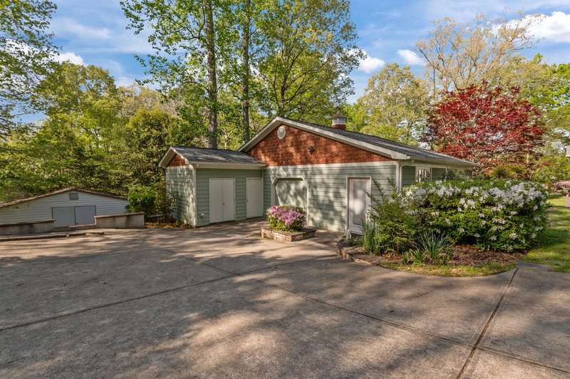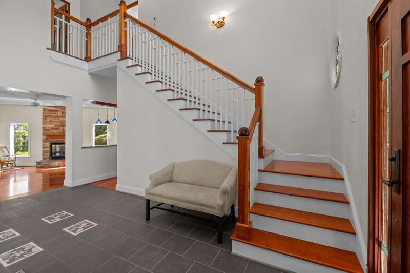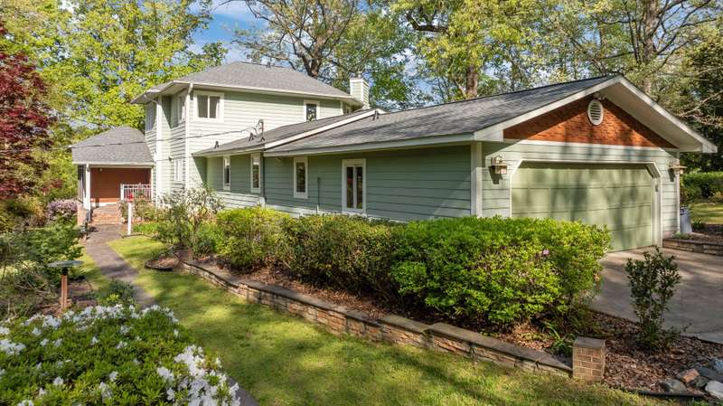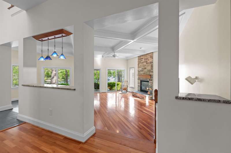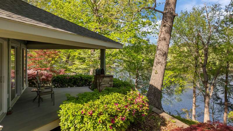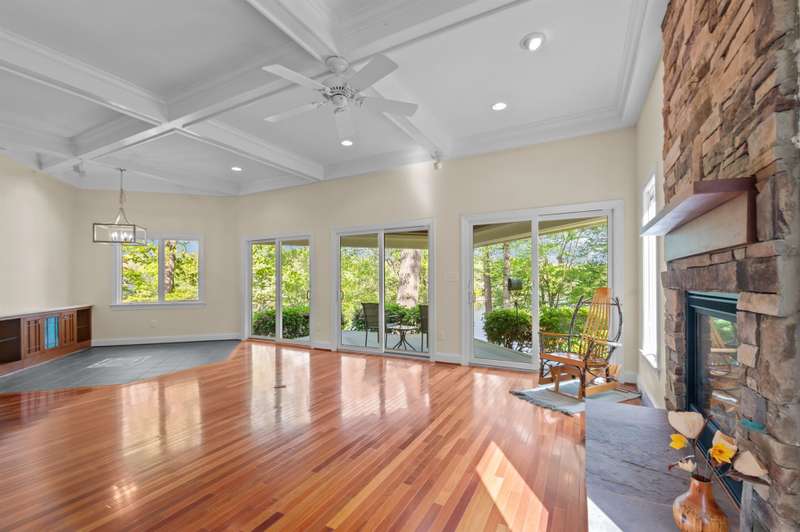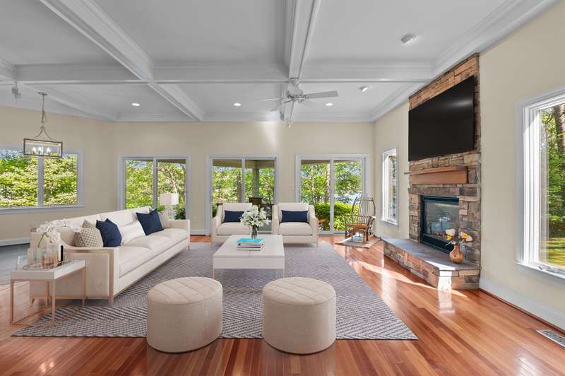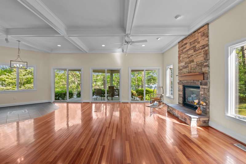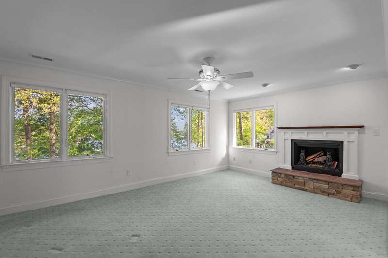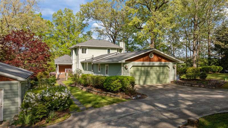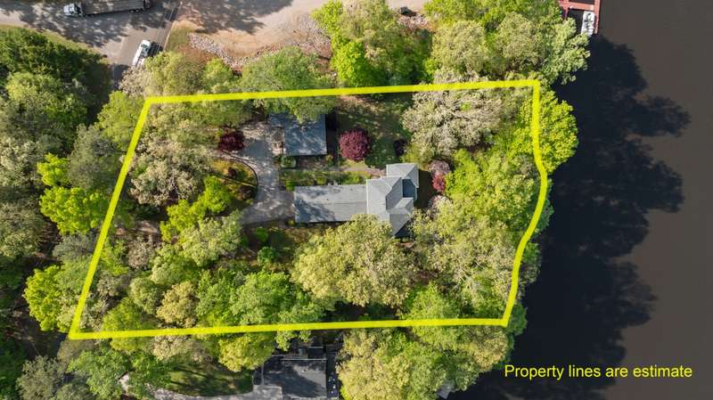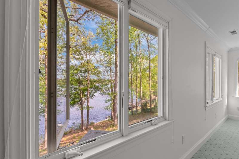 Waterfront living at its best with this gorgeous 4-bedroom, 3-bathroom home situated on a beautifully landscaped expansive 1-acre lot! Enjoy panoramic lake views from so many rooms, just incredible! The grand living room features a stacked stone fireplace, and a breakfast area, complete with coffered ceilings, Anderson windows, and custom millwork galore. The spacious layout includes two main floor Bedrooms, one with an ensuite full Bathroom, a formal Dining room, a Home Office, as well a large Laundry room with ample storage cabinets. Upstairs you'll find two additional Bedrooms offering room for everyone. Outdoors, the property is a gardener's dream, with vibrant landscaping and serene lakefront vistas. The detached 1100 square foot Workshop with multiple rooms, two mini-split HVAC systems, and an additional third-car garage bay offers incredible space for billiards, hobbies, a playroom, and plenty of areas for storage.Additional highlights include a Brand-New Roof (2025) on both the Home and the detached 1100 square foot Workshop. All of this and it's in close proximity to the community entrance. Located in a gated community with top-tier amenities like boating, fishing, beaches, pickleball, and access to The River Golf Club just minutes away. Each residence also includes two free golf memberships!
