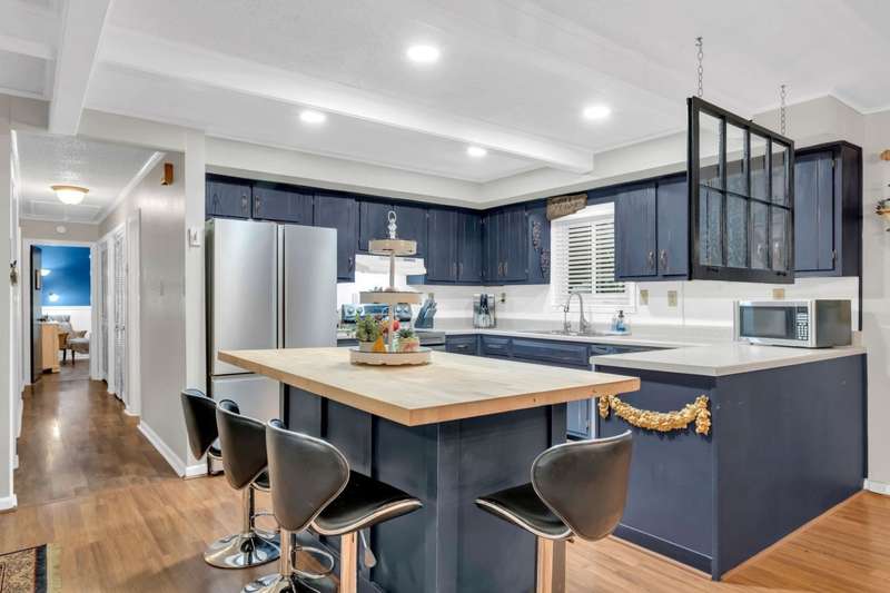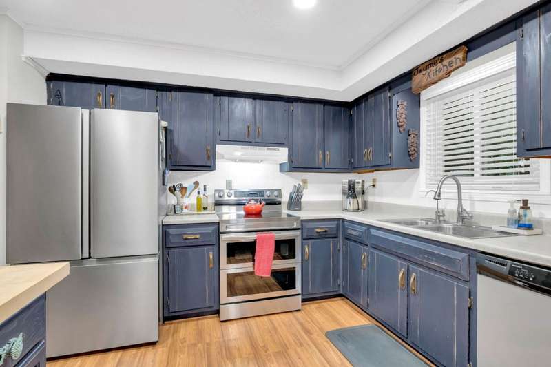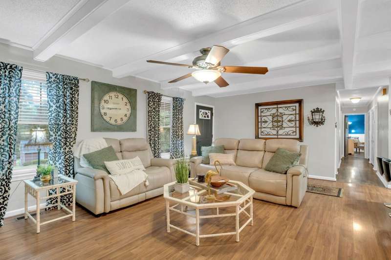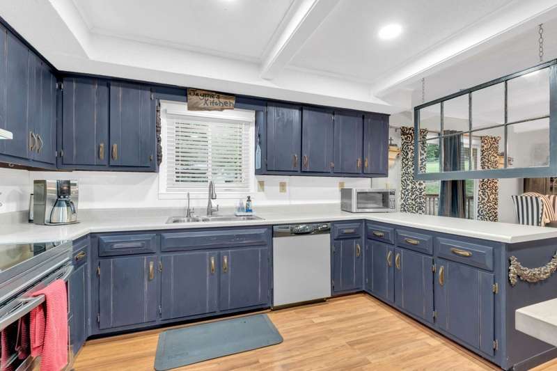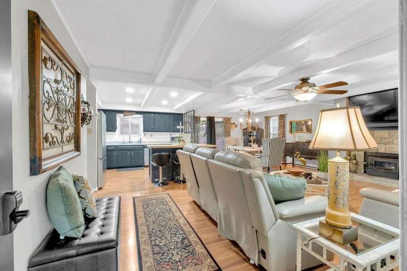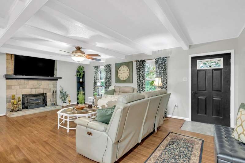 Great outdoor living space in this private BRICK FRONT ranch with FINISHED BASEMENT sitting on just under an acre lot on CITY SEWER by the lake and downtown Dover, located just 5 minutes to 2 boat ramps to the beautiful Kentucky Lake. Recently updated with LPV floors thru-out ( NO CARPRET ). Open Floor plan with beautiful WOOD BURNING fireplace in the great room that is open to the kitchen with a huge double door pantry, an Island with seating and a spacious 12x14 dining area that offers plenty of space to hoast your dinner parties. The primary suite has plenty of space for a king bed, walk-in closet, ans on-suite bath with a beautiful wood built-in cabinet for storage. The finished basement offers plenty of space to entertain, another room with a closet that could make a 4th bedroom, a huge laundry room with lots of space for storage plus a 2 car garage. The home sits on just under an acre lot with lots of beautiful trees, a double deck, a fenced backyard, 2 separate driveways a huge shed with a covered storage area.