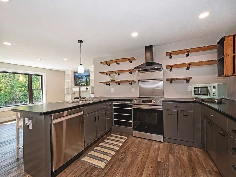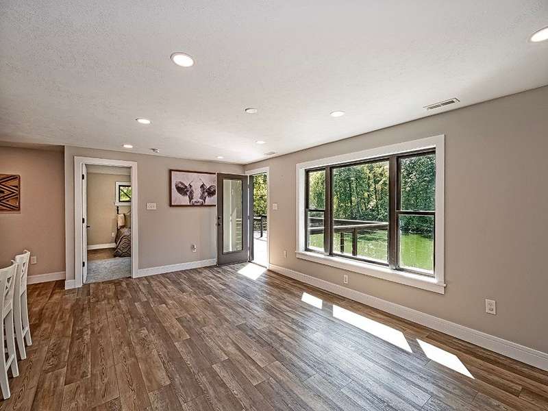 Built in 2020 w/Addition Added in 2023. Beautiful/Tranquil Setting on a Spring Fed Private Lake just off the Connoquenessing Creek. Located less than 10 Minutes from Zelienople & Routes 19/79. Open Floor Plan w/Creative use of Materials for a Rustic yet Modern look! The Kitchen Hosts: Open Shelving, Trendy Black Countertops & SS Appliances. Lux Vinyl Plank Flooring thruout Main Living Area. Living Room/Dining Room Combo Features a Large Picture Window to Enjoy the View, Built-in Shelving, Mounted TV, & Propane Gas Fireplace. Access the 2 Tier Deck here & Enjoy the View! Spacious Owners Suite with His & Hers Closets, Private Bath w/Double Bowl Sinks, & Glass Slider/Access to the Decks. BRs 2 & 3 w/Full Bath. Laundry/Half Bath Combo Room. New Addition Includes: 4th/Guest BR/Sitting Room & 3rd Full Bath, Office/Study Nook, & 2 Car Attached Garage. W/O Basement w/Access from the Outside - Ideal for Storage or Addt'l Living Space. Shed for Equipment Storage. Firepit & Private Dock Included!
