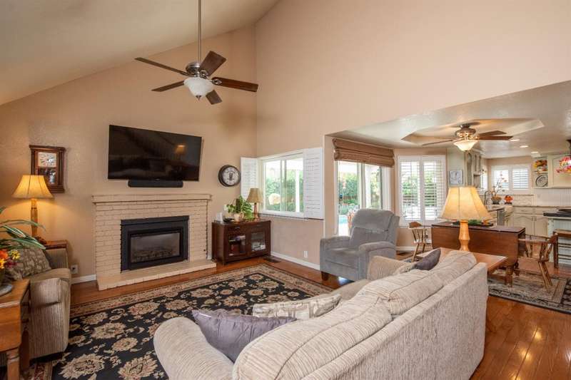 Charming, lovingly cared-for home in a prime location near shopping, schools and Highway 99. This beautifully updated residence offers 2,430 square feet of living space on a large, professionally landscaped corner lot with pool and spa perfect for entertaining and everyday family life. Property highlights: Four bedrooms and three updated bathrooms Main-floor bedroom with a full bath ideal for guests or multi-generational living Beautiful, rich hardwood floors throughout much of the home Separate living and family rooms plus a formal dining room Updated kitchen with center island, newer appliances and hard-surface counters Abundance of storage throughout the home HVAC replaced 2 years ago for added comfort and efficiency Large, beautifully landscaped corner lot with pool and spa This home blends timeless finishes with thoughtful updates and excellent outdoor amenities. Schedule a showing today to experience it in person.