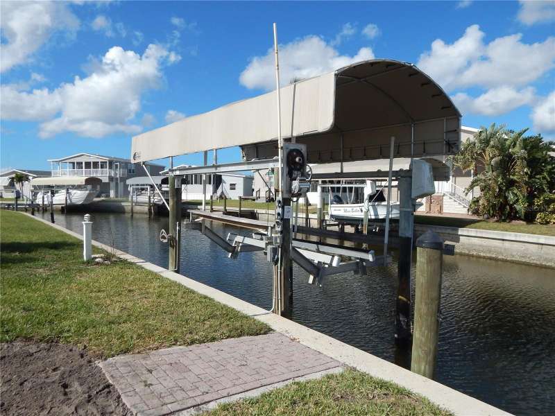 Under contract-accepting backup offers. WATERFRONT! Rare opportunity to build your retirement home on this vacant lot in the beautiful community of Windmill Village. These waterfront lots are rarely available. Offering 55 ft of waterfront, you'll find a newer concrete seawall and newer covered boat lift already in place. Just 20 minutes to the Habor via Alligator Creek. Windmill Village is a resident owned adult community with a saltwater marina, upscale community clubhouse for dinners, dances and events, horseshoes, large heated pool and much more. Price does not include the $20k share buy-in that is returned when you sell. Sell the snowblower, grab the fishing gear and come enjoy the Florida lifestyle.