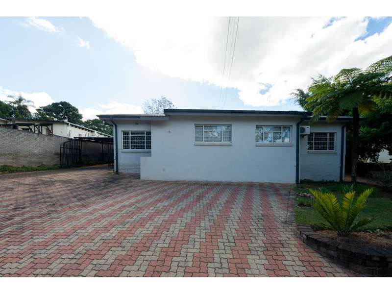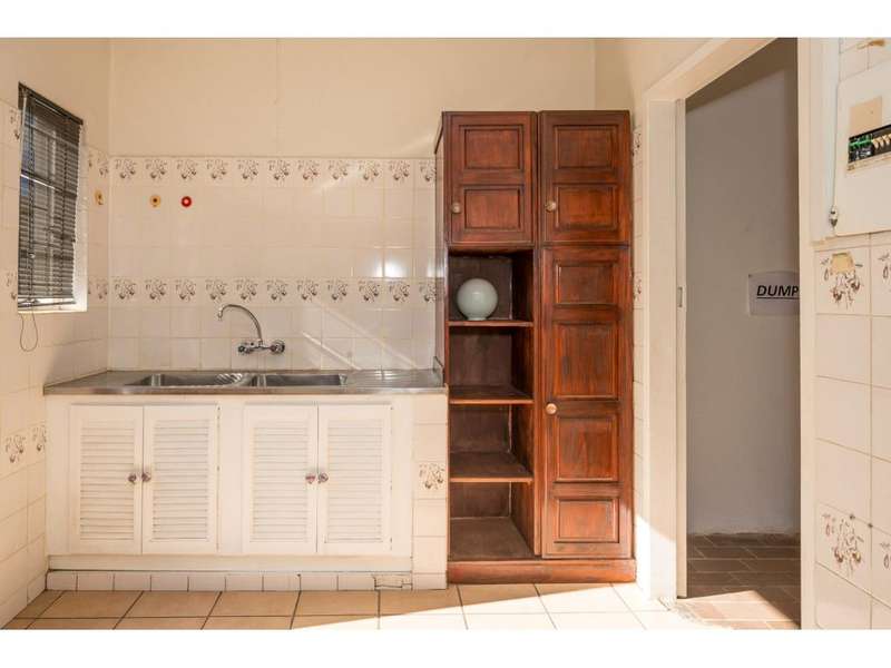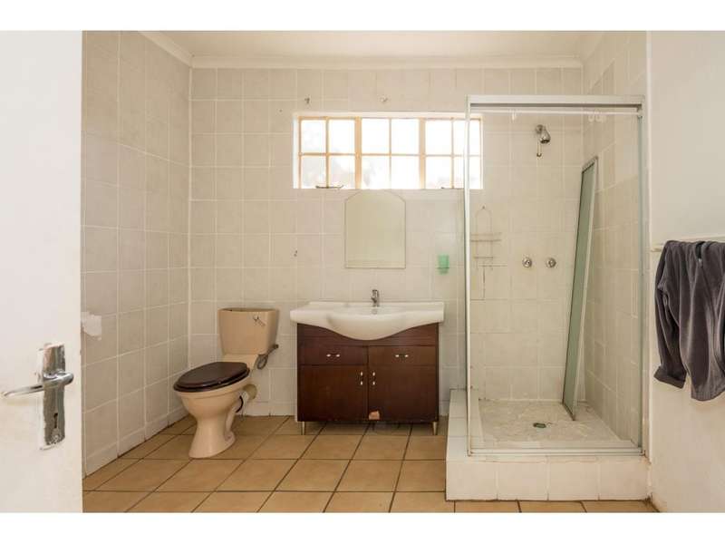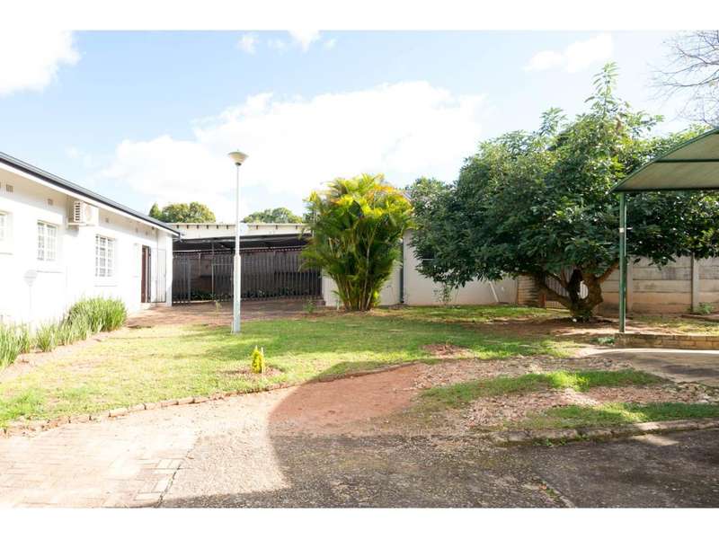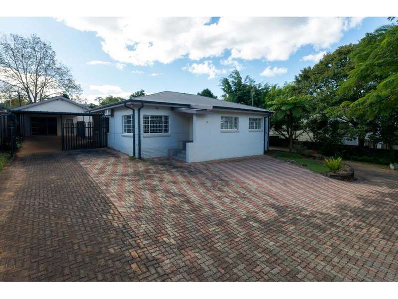 Properties in this street can be zoned for businesses. It could accommodate perhaps three businesses as it has a main house, flat and an out building. The property is well paved with five carports and plenty of open parking areas. The main house has an entrance hall/reception area, four bedrooms/offices, two bathrooms, big lounge/conference room, and a study/office/storeroom. The three bed, three bathroom flat is in good condition. The out building could be used for storage or staff accommodation. Alternatively, the property could be upgraded and utilized as student accommodation. The property is fully walled and gated. Urgent Sale!