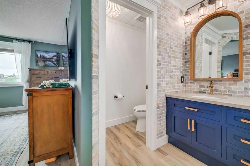 Backing onto a serene nature reserve, this fully renovated 2-storey walkout offers nearly 2,500 sqft of beautifully reimagined living space with 5 bedrooms upstairs and 3.5 bathrooms. Every inch of this home has been professionally redesigned with a modern coastal-industrial vibe that blends warmth, style, and durability. The main floor showcases a custom-renovated kitchen (2025) with a striking concrete island inlaid with shell, fossils, and agate. Paired with high-end appliances including a Forno gas range, LG range, and Samsung fridge. The open-concept living space is anchored by a dramatic ledger-stone fireplace and new flooring throughout, flowing seamlessly into the sun-filled dining area. Upstairs you’ll find five spacious bedrooms, each with blackout blinds, custom linen drapes, and brand-new solid Lincoln doors with upgraded trim and baseboards. Bathrooms throughout the home have been fully redesigned with curbless showers, waterproofing systems, and custom concrete countertops, mirrors, and finishes; built to last. The fully finished walkout basement (2025) expands your living space with a large recreation area, a brand-new electric fireplace, and a 100% waterproof full micro-concrete bathroom featuring shiplap ceiling with concrete integral sink. Step outside to the private cedar hot-tub room (2024) with a 10-person All American spa, perfect for year-round relaxation. Additional highlights include a new vinyl deck (2024), a custom chevron-tiled staircase, designer lighting throughout, new washer/dryer set (2023), a 107 sqft shed, and a double attached garage. With its one-of-a-kind design, premium finishes, and breathtaking natural backdrop, this home delivers the perfect balance of luxury and lifestyle.
