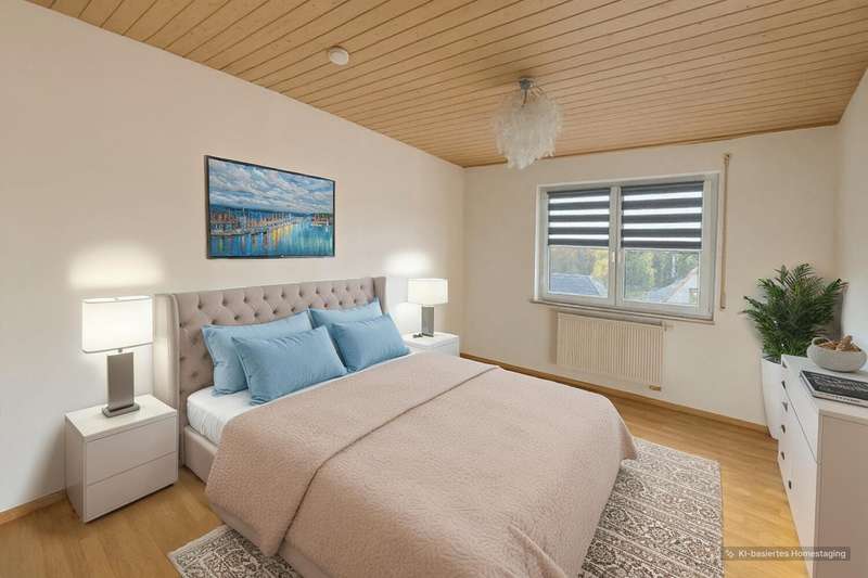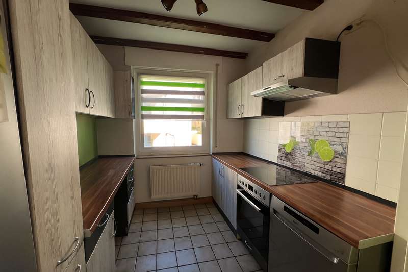 This charming 3-room apartment is located on the 1st floor of an apartment building built in 1966 and offers plenty of space to feel at home with around 74 m² of living space. Upon entering the apartment, you are greeted by a spacious hallway from which all rooms are easily accessible. The bright living room with parquet flooring and direct access to the large balcony forms the heart of the apartment - perfect for enjoying sunny hours or a cozy end to the day. Two further rooms are ideal as bedrooms, children's rooms or studies. A spacious kitchen, a daylight bathroom with a bathtub and a separate WC with a window complete the space on offer. The apartment is in a well-kept condition. Some of the windows were replaced in 2014 and 2017. Heating is provided by a gas floor heating system, which is not included in the communal property. The apartment is currently still rented, but will be vacant at short notice. The offer also includes a garage, a cellar room and a practical storage room in the attic. As the apartment is currently still occupied, the rooms have been digitally emptied and in some cases virtually furnished ("staged") with the help of AI to give interested parties a better idea of the spatial effect. The fitted kitchen (WITHOUT electrical appliances) can be taken over if necessary. The best way to see this apartment for yourself is to arrange a viewing today.