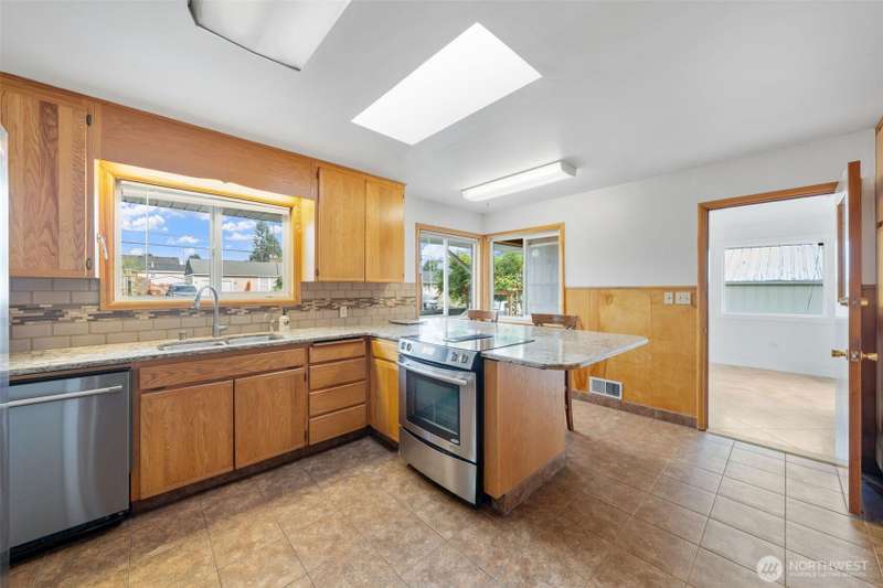 Tremendous location in North Tacoma near UPS, Proctor, and easy highway access this spacious home blends timeless character with modern updates. The main level features: A stylish eat-in kitchen with stainless steel appliances, granite counters, breakfast bar, light filled open living & dining areas, with original built-ins and a cozy gas fireplace. Two generous bedrooms, full bathroom & second entry through the sunroom. The expansive lower-level offers: Large rec room, new carpet w/French doors leading to patio, Primary bedroom, bonus room & den and 4th bedroom. Private deck off the sunroom, fully fenced with a massive detached 3 Bay Garage/shop unique to North Tacoma all on a wide corner lot. This property is ready for your next chapter.