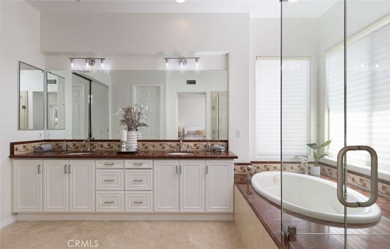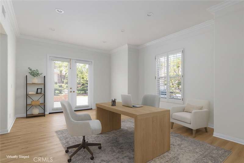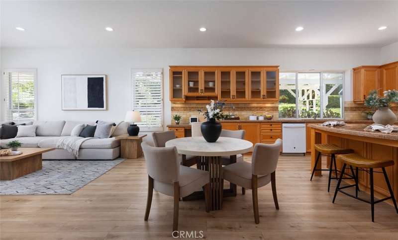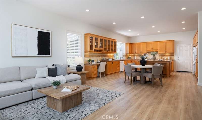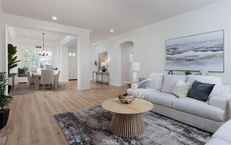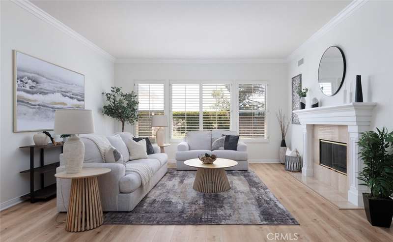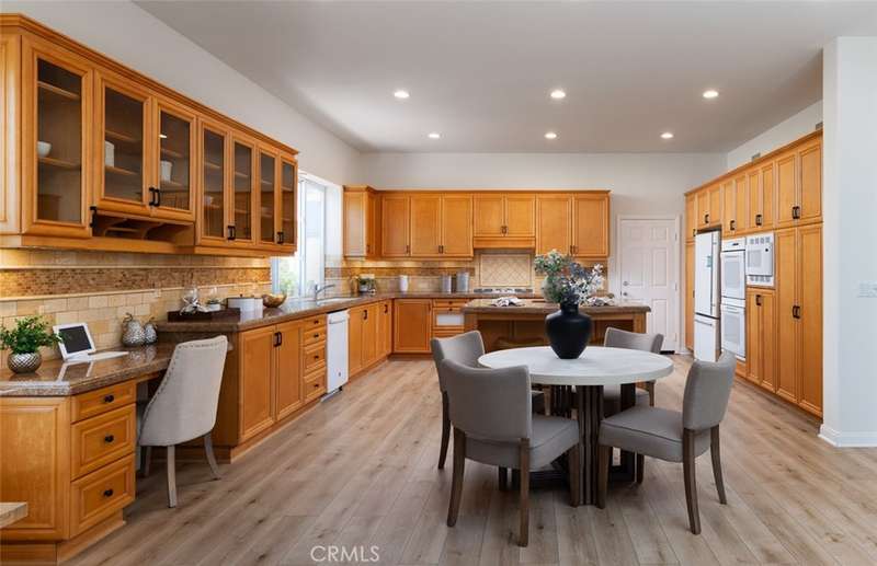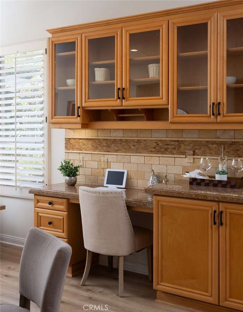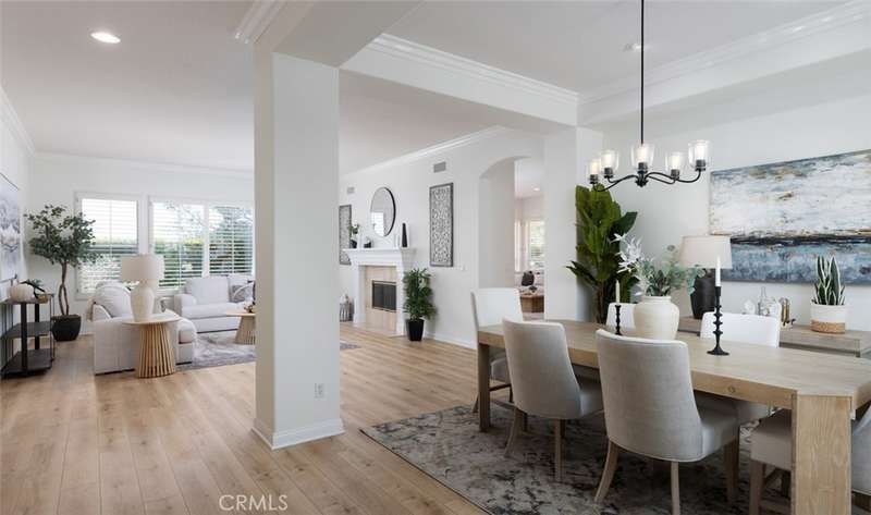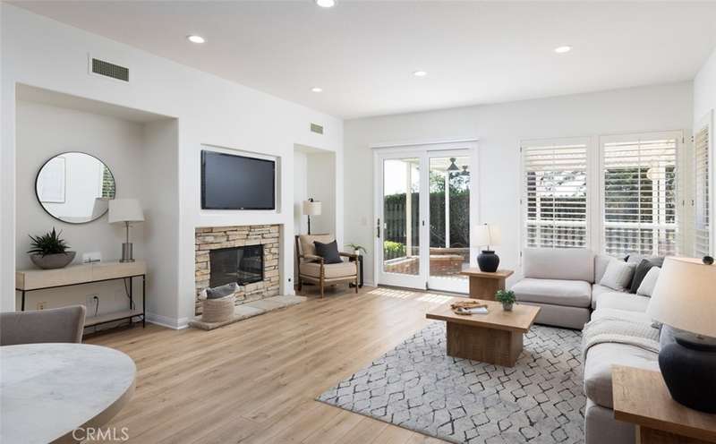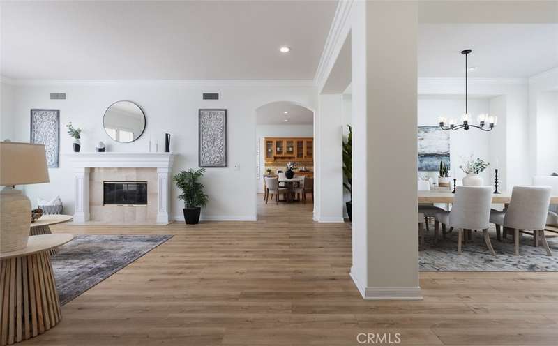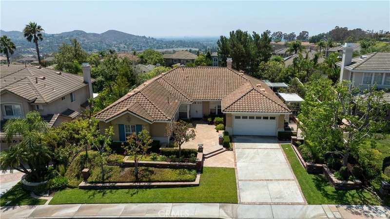 GATED PARKRIDGE ESTATES COMMUNITY | MOVE-IN READY | LIGHT & BRIGHT LIVING SPACES | Welcome to 6406 E Abbeywood Road, a beautifully updated home nestled within the gated Parkridge Estates community in the hills of Orange. With fresh finishes, thoughtfully designed interiors, and access to top-notch amenities, this property combines convenience, comfort, and style in one of the area's most sought-after enclaves. From the moment you step inside, you're greeted by a spacious open layout flooded with natural light. Crisp white walls, warm-toned wood flooring, and elegant crown molding create a modern yet welcoming ambiance throughout. The living and dining areas flow seamlessly into the heart of the home, a large open-concept kitchen and family room anchored by a cozy fireplace. Whether you're entertaining or enjoying quiet evenings in, this flexible space adapts to any lifestyle. The kitchen features solid wood cabinetry, granite countertops, and a central island that serves as the perfect prep space or breakfast bar. Ample cabinet storage and high-end appliances make this a kitchen that's as functional as it is beautiful. Large dual-pane windows and plantation shutters frame views of the private backyard and covered patio, which is an ideal spot for al fresco dining or winding down after a long day. The generously sized primary suite offers direct access to the backyard, along with a walk-in closet and an updated en-suite bath featuring dual sinks, a soaking tub, and a walk-in shower. Three additional bedrooms, one with an en-suite bathroom and two with a shared hall bathroom provide flexible space for family or guests. An oversized office space adds even more versatility as it is ideal for a home workspace, media room, playroom, or second entertaining area. Outside, the low-maintenance yard includes mature landscaping, manicured hedges, and multiple seating areas perfect for enjoying Southern California's indoor-outdoor lifestyle. The Parkridge community enhances the experience with two private gates, a sparkling pool and spa, a sport court, and BBQ areas, all of which are ideal for gatherings and weekend relaxation. Enjoy close proximity to local hiking and biking trails, shops, dining, award-winning schools, and the best of what Orange has to offer. Come see why homes in Parkridge are rarely available.