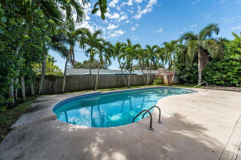 Fabulous pool home with 2 bed/ 2 bath & attached garage. Tile & Laminate flooring. Spacious Florida Room. Kitchen has built-in breakfast area, granite counters & SS appliances. AC 2020. New Hot Water Heater 2024. Great private backyard with plenty of outdoor space for entertaining, outdoor kitchen area & storage shed. Fenced yard. NO HOA fees!Hurricane protection. Front door is Impact.Convenient location close to beaches, restaurants, shopping, schools, hospital.