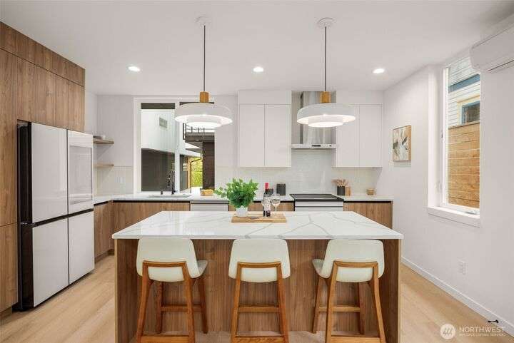 Greencity Homes is thrilled to release its final home at Riven: a collection of 4 beautifully crafted homes nestled in the perfect spot between Wallingford/Green Lake. This sophisticated home boasts open concept living w/ patio off the living space, large island for entertaining + luxe Samsung Bespoke appliances. 4 bedrooms are conveniently on adjacent floors with an elevated primary suite featuring a 4-piece bath & walk-in closet. An unbeatable location, Riven places you steps away from beloved eateries such as RockCreek, Paseo, Blue Star Cafe, Murphy's Pub, Woodland Park & Zoo, & Green Lake! Enjoy effortless commuting with quick access to Hwy99 & I-5 + proximity to bustling neighborhoods incl. Ballard, UW, U Village, Green Lake & Fremont