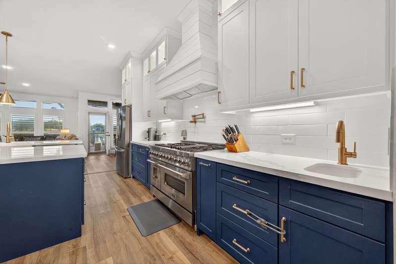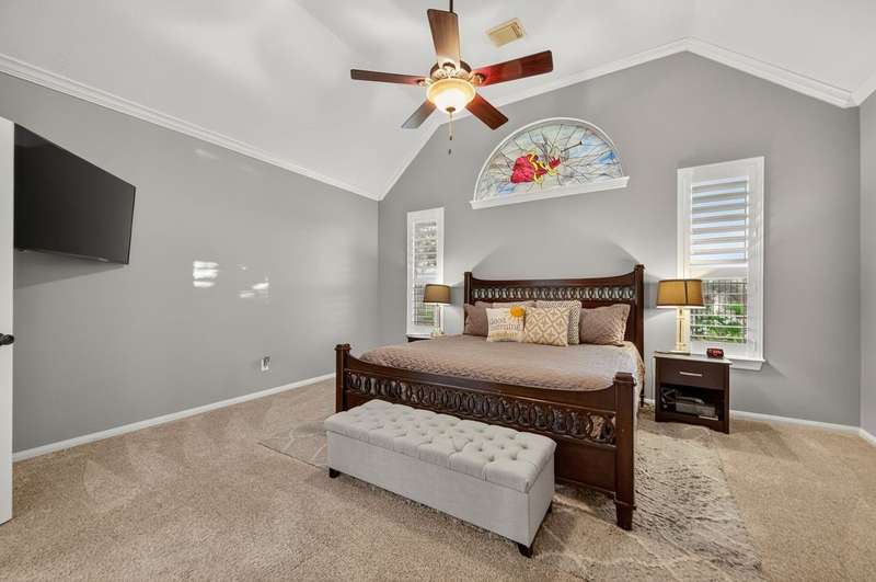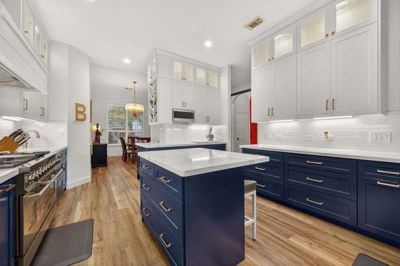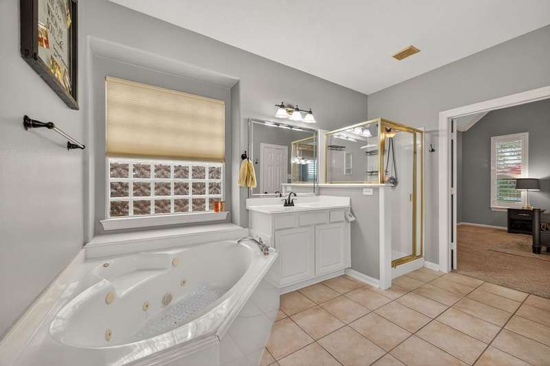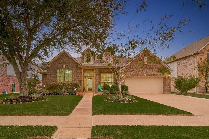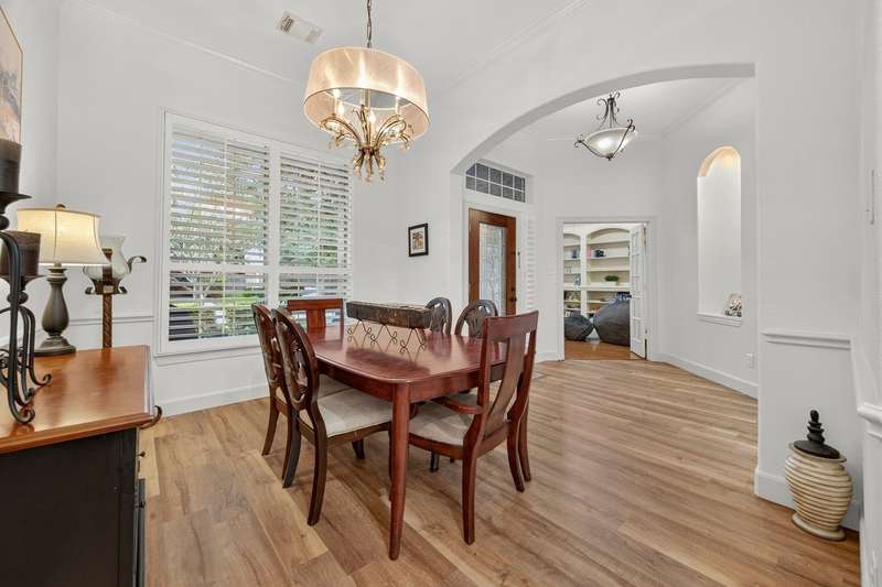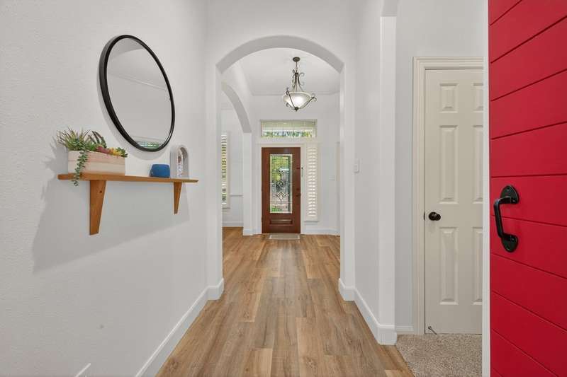WOW! STUNNING LAKEFRONT 1-story with POOL & 3-CAR GARAGE! 4 bedrooms, 3 full baths in a highly desirable GATED COMMUNITY with STUDY, FORMAL DINING, and the open floor plan you’ve been searching for. Designer updates throughout including a SHOW-STOPPER KITCHEN with quartz counters, lighted ceiling-height cabinets, ZLINE chef’s gas range, central island, stylish backsplash, and shiplap accents. Private study with custom built-in library and double doors. Elegant dining with easy kitchen access. Spacious living room with shiplap & stone fireplace and a wall of windows showcasing breathtaking triple-fountain lake views. Plantation shutters, raised-ceiling primary suite, and spa-inspired bath with seated vanity. Backyard oasis features a covered patio with wood ceiling, outdoor cabana kitchen/bar, sparkling pool, and serene fountain-view lakefront! Recent roof.