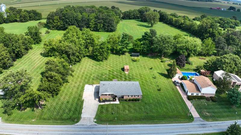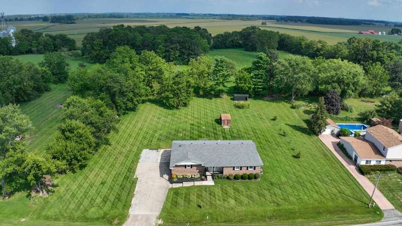 HAPPINESS can be found in 9.23 acres! This property has it all! 4 parcels totaling just under 10 acres and ready for your ADVENTURES. Welcome home to this well-maintained brick ranch with tons of STORAGE space and many updates. The gas fireplace will greet you in the living room and you'll flow into the hub of the home with an OPEN KITCHEN to the dining and family room where you'll appreciate a woodburner this winter! French doors open to the DECK and awesome views of the property. Laundry is just off the dining as well as the garage with storage, storage and storage! 4H projects? Car projects? Woodworking? Gardening? Lots of room and possibilities to enjoy all the things! 3 bedrooms and 2 UPDATED full baths including master en suite with whirlpool tub and double vanity. So many updates to this home, new gutters and shutters (25), partial roof (21), iron filter (21), whole house water filtration (23), windows, well liner, lines and tank (10). Updated flooring throughout. Lots of natural light! Home includes appliances - range, frig, dishwasher, microwave. Howard Hanna exclusive MONEY BACK GUARANTEE! See this one fast!!!