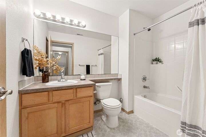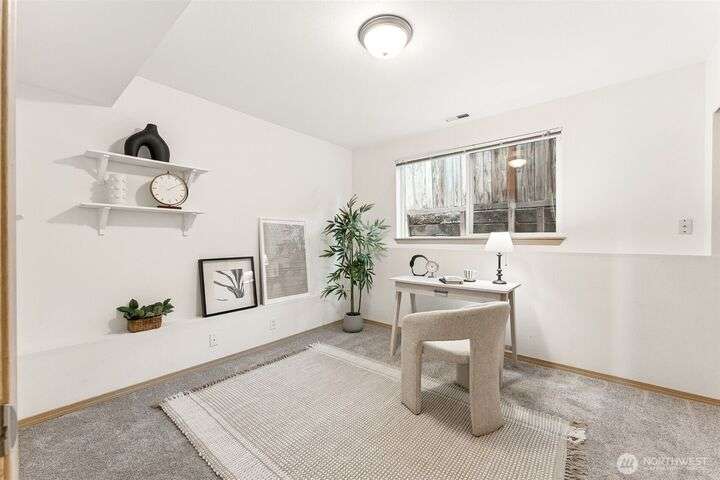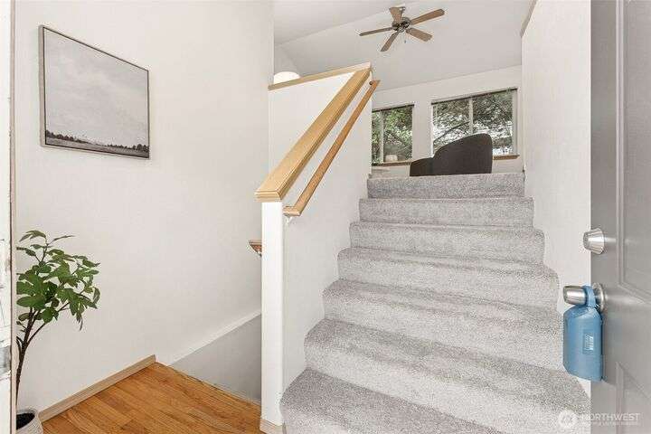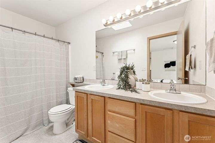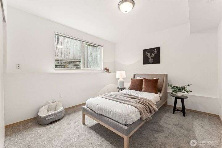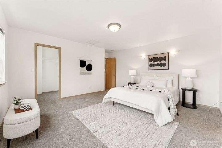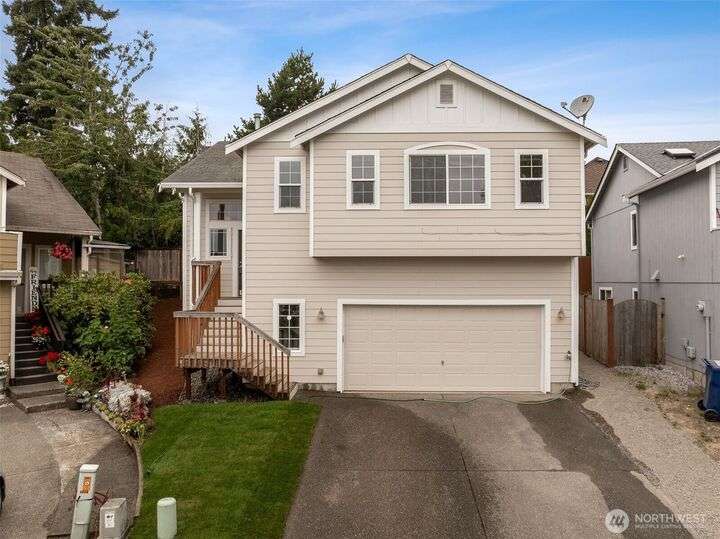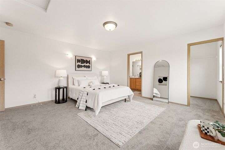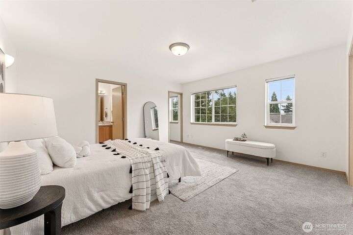 A Rare Gem in a Prime Location! Nestled at the end of a peaceful cul-de-sac, spacious home boasts soaring 9-foot ceilings, hardwood entry, brand-new carpet & pad, a skylight that fills the space w/ natural light. The open-concept layout is bright & airy. Enjoy a generously sized kitchen featuring a pantry, all appliances included, a cozy eating nook, breakfast bar, & a formal dining area. The expansive great room centers around a gas fireplace, creating a warm and inviting atmosphere. Retreat to the luxurious primary suite with dual walk-in closets and a 5-piece bathroom. Downstairs, you'll find two additional bedrooms, a full bath & an oversized laundry room complete with washer/dryer. Low-maintenance yard. Move-in ready!