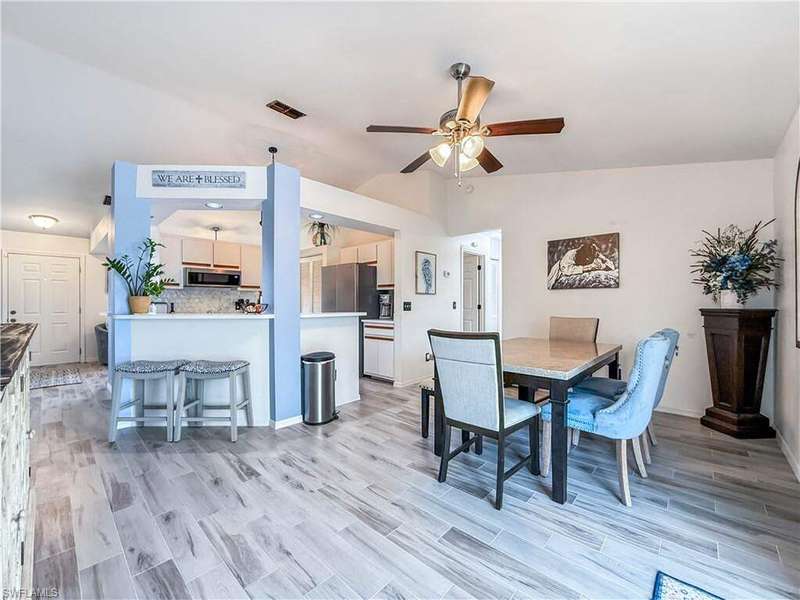 Discover your oasis in the heart of Cedarwood, Lehigh Acres. This charming 3 bed plus den, 2-bath pool home blends modern updates with timeless appeal on a spacious corner lot. Beautiful tile flooring flows seamlessly throughout this nearly 1300 sqft home. Both bathrooms have been fully renovated with sleek quartz countertops, offering a fresh and elegant touch. The home also features a brand-new appliance package added within the last year, an in-house laundry, a spacious two-car garage, and a screened lanai perfect for relaxing or entertaining. Outside, the well-manicured lawn and thoughtfully designed landscaping enhance the home's curb appeal. Recent upgrades include a new roof (2023) and a newer AC system (2021), ensuring comfort and peace of mind. This property is on city water and sewer and uses a well for irrigation, offering efficiency and convenience. Located in a non-gated community, in a non-flood zone, with no HOA fees, this home provides freedom and ease of living. Enjoy the Florida lifestyle with a sparkling pool, lush surroundings, and outdoor spaces ready for gatherings, quiet mornings, or sunset evenings.