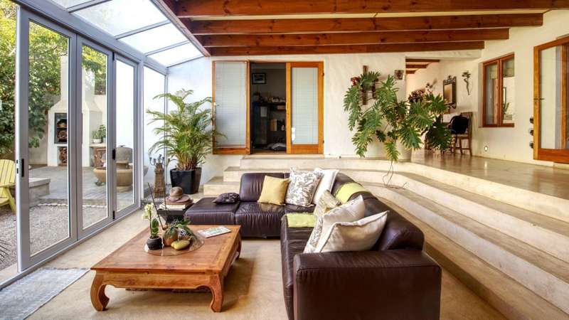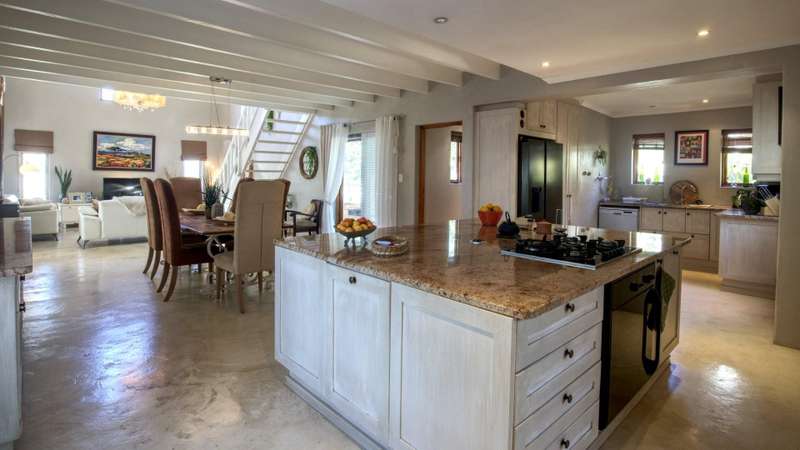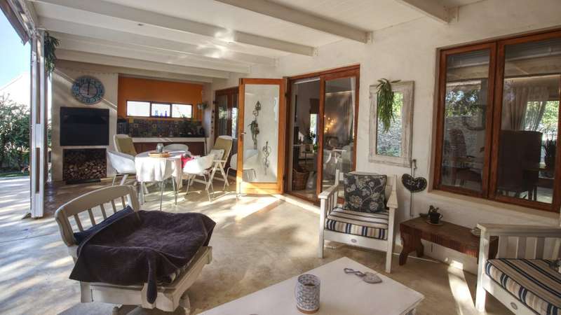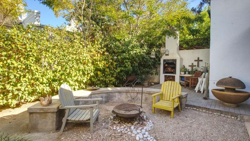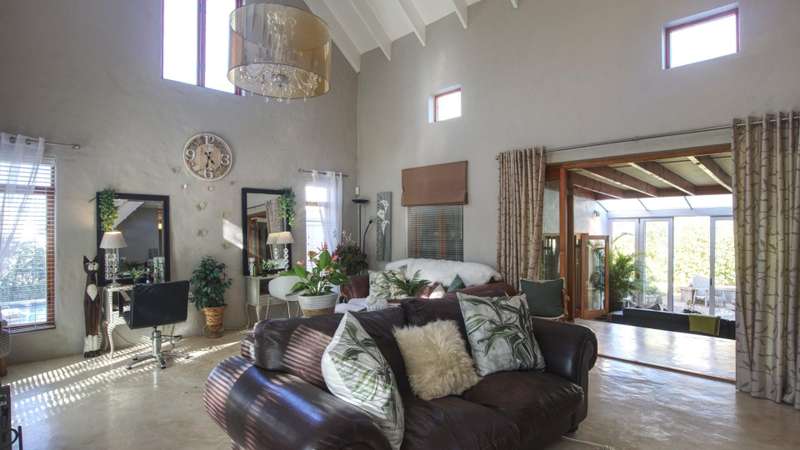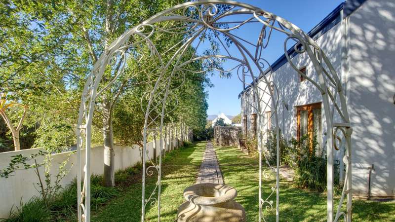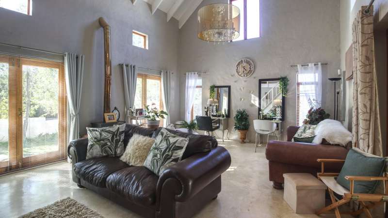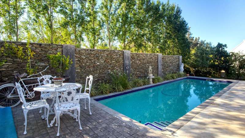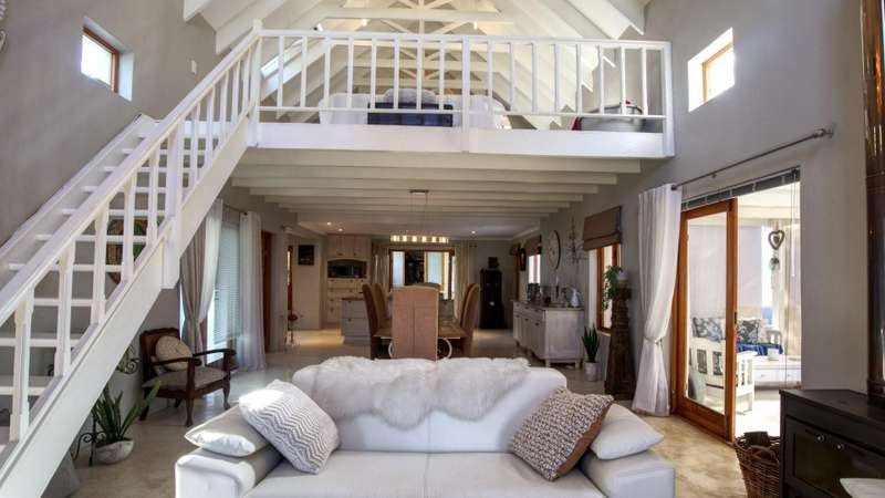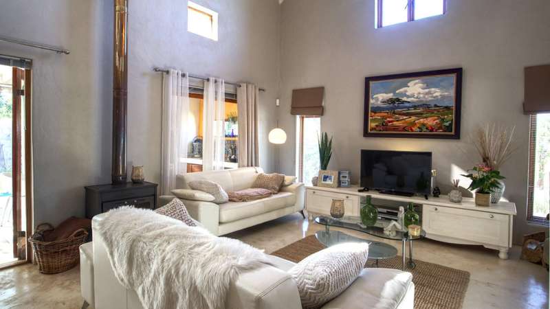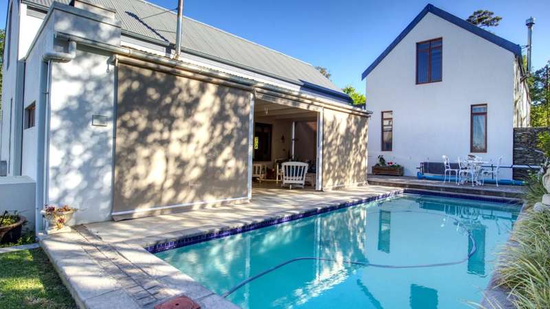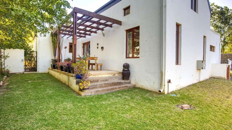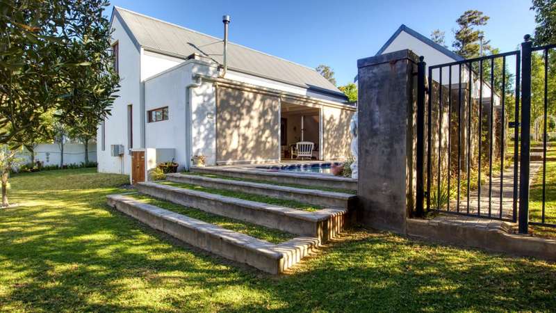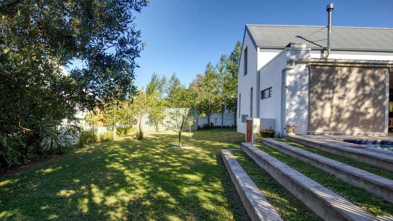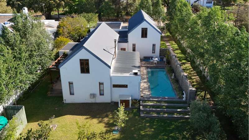 26 Van Reenen offers a chance to enjoy McGregor Village life from your own private, luxury retreat. Situated on a 1,076m?? corner plot within the MIRA estate and gardens, the property is surrounded by high-value homes and features beautiful landscaping that provides privacy with a low boundary wall. For convenience, there are two garages, a gated carport, and off-street parking for guests. The house presents a modern take on Karoo-Victorian architecture, in line with the guidelines of the McGregor Heritage Society, ensuring both style and long-term appeal. Designed for entertaining, it boasts three living areas, a dining area, and an open-plan kitchen. Two living rooms have slow-combustion stoves for cozy winter evenings and double-volume ceilings with exposed trusses for an airy feel. There are two outdoor entertainment areas: one open with a freestanding braai, and another enclosed with retractable screens and a built-in braai. The enclosed patio leads directly to the pool, which is sheltered by a privacy wall and connects to the garden via broad steps. Additional features include a multipurpose room suitable for an office, a separate laundry, and ample space for guests. The main bedroom sits on a mezzanine level and includes an open-plan en-suite bathroom with a freestanding bath. The second bedroom is also on a mezzanine, sharing a full bathroom with the third bedroom located on the ground floor. There's also a guest toilet just off the dining area.