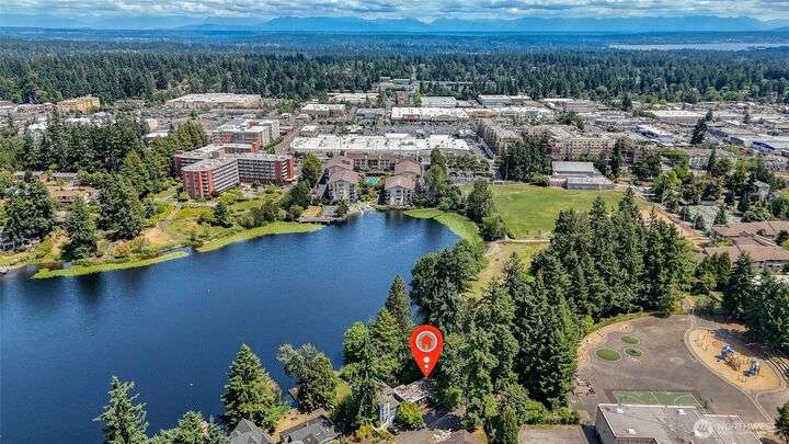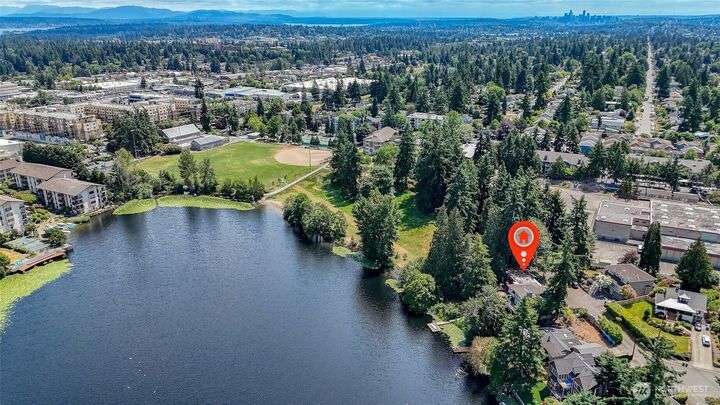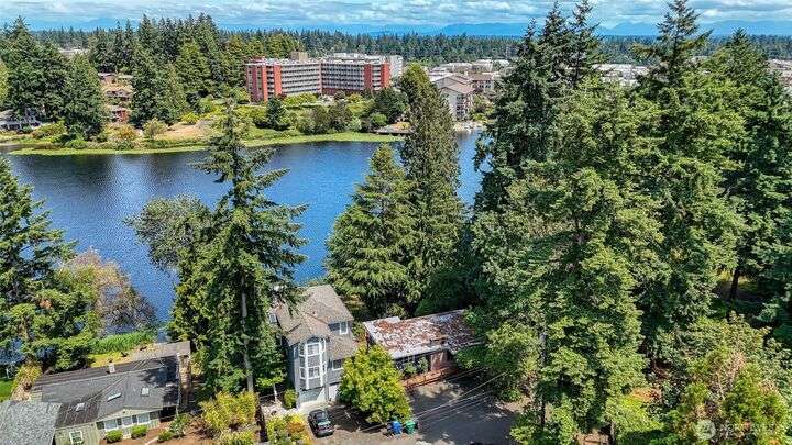 Rare lakefront property with 60' of no bank lake frontage on tranquil, peaceful Bitter Lake. Stunning views, large lot gently sloping down to the lake and quiet dead-end location. Tons of options-Live in as is, remodel, expand on existing home, rent out a unit or build your dream lakefront home. Current structure is a legal duplex, but can live as a single family home. Lake views from each level & oversized view deck. Off street parking for 4 cars. Development potential as well. Currently zone RSL, but proposed rezone to LR1. Walk to Bitter Lake Community Center, tennis/pickle ball courts, playground, great access to transit centers, shopping, & Interurban Trail. Bitter Lake is great for kayaks, canoes, paddleboards and fishing.