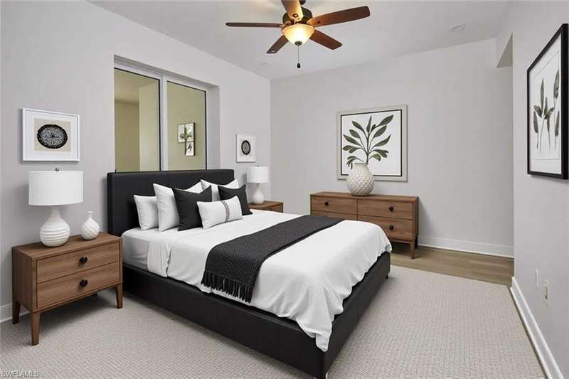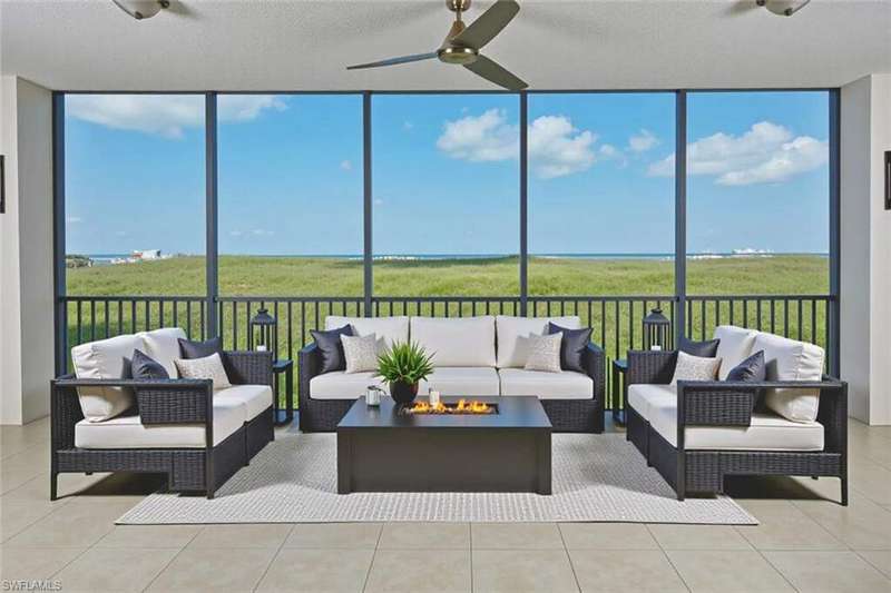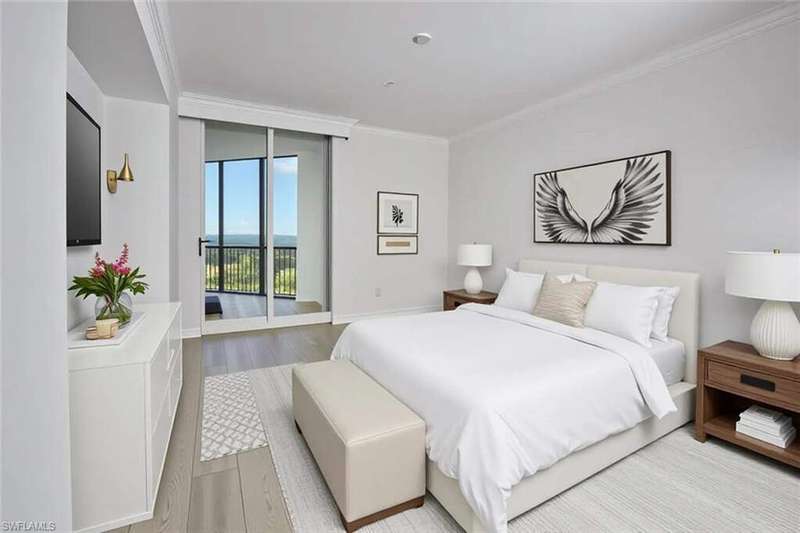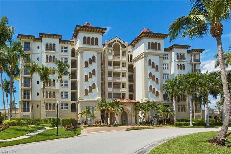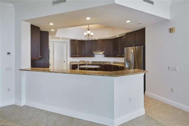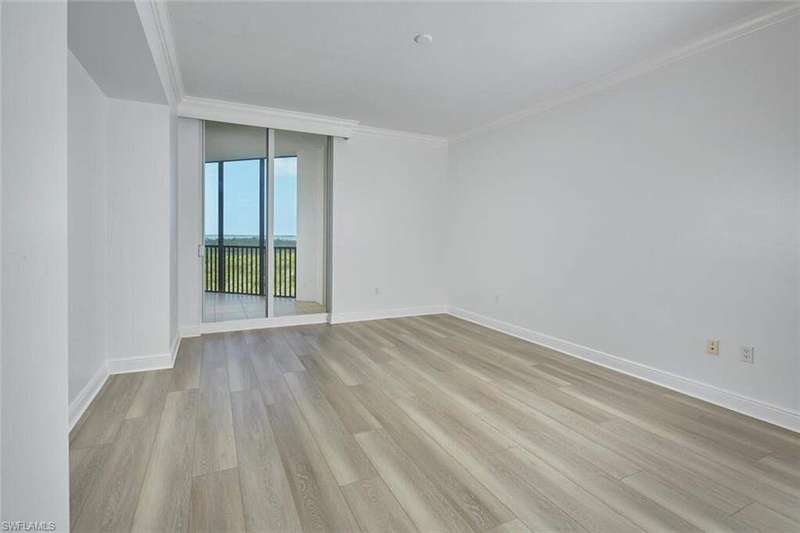 MAGNIFICENT VIEWS. Imagine coming home to the breathtaking beauty of stunning sunsets and panoramic views of Estero Bay, all from the comfort of your exquisite 4th-floor residence in Castella at The Colony at Pelican Landing. This home is adorned with light plank flooring throughout the spacious bedrooms and closets, and freshly painted walls- a clean canvas. The open floor plan boasts high 10 foot ceilings and impact-resistant windows and doors that ensure both elegance and safety. The expansive floor-to-ceiling sliding doors in the living room and primary suite lead to a magnificent screened-in lanai, where you can soak in pristine views of the Bay. Solid core doors throughout. The open-plan kitchen, equipped with granite countertops and stainless steel appliances, is perfect for entertaining. A GREAT VALUE! Don't miss out on the chance to call this stunning property your own! Two car spaces in garage. Steps from the tropical style pool & spa and the best grilling station. Living at The Colony includes private membership to The Bay Club, formal and informal dining and events. Access to a private beach park, a huge tennis program, canoeing/kayaking, sailing club, bocce & pickle ball, the list goes on! Elective private golf options. The Colony is a quick jaunt to the airport and just a mile and a half to great dining and shopping.