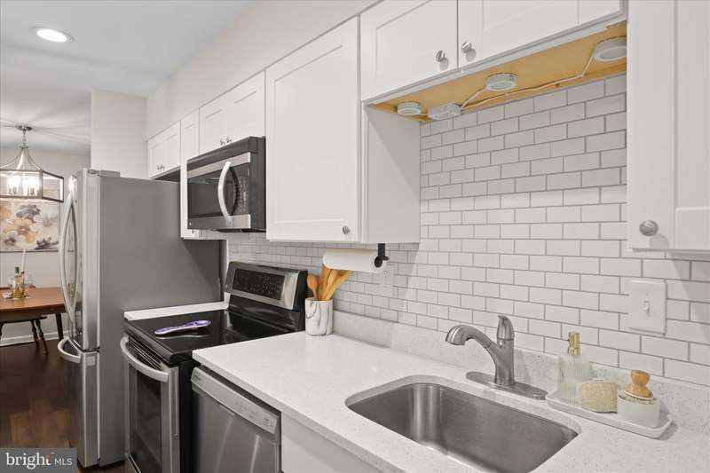 Garden-style condo in the sought-after Cardinal Forest Condominium Community in West Springfield. Move-in ready! This beautifully updated, mid-level condo features 2 bedrooms and 1 bathroom with a walk-out French door to an inviting patio. Ideally located, tucked away deep in the neighborhood, adjacent to green space, offering ample parking, and a short distance to the community pool. West Springfield HS Pyramid. The home was completely renovated in 2019 and offers 978 square feet. Beautiful hardwood flooring adds warmth and elegance, flowing seamlessly throughout the home. The kitchen is a chef's dream, complete with stainless steel appliances, quartz countertops, and a stylish backsplash. Highlighted by chic overhead lighting, the formal dining room is the ideal setting for hosting guests for dinner. The living room is flooded with natural light streaming through the windows and the door that leads to your own private patio. Surrounded by lush greenery, the patio is the perfect place to enjoy a morning cup of coffee or a good book. Both bedrooms are generously sized. The primary bedroom features a spacious walk-in closet equipped with an Elfa organization system. The full bathroom is truly luxurious, with two sink vanities and a separate tub/shower area. Additionally, the HVAC and water heater were replaced in 2022, ensuring your new home is comfortable and energy efficient. The electrical panel was updated in 2021, and custom blinds were installed in 2020. The walk-in closet in the full bathroom has a front-loading washer and dryer, along with additional shelving. The Cardinal Forest Community provides an exceptional living experience for its residents with top-notch amenities, including swimming pools, tennis courts, playgrounds, and more! Condo fee covers gas, water, sewer, trash, and community amenities. Unbeatable location with easy access to I-95, I-395, VRE, Pentagon bus routes, shops, parks, and Washington, DC. To find the unit, look for building #5901, and the unit is ""B"". Welcome Home!