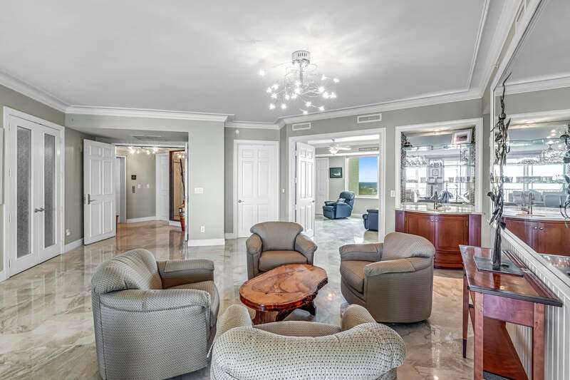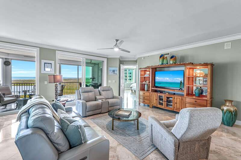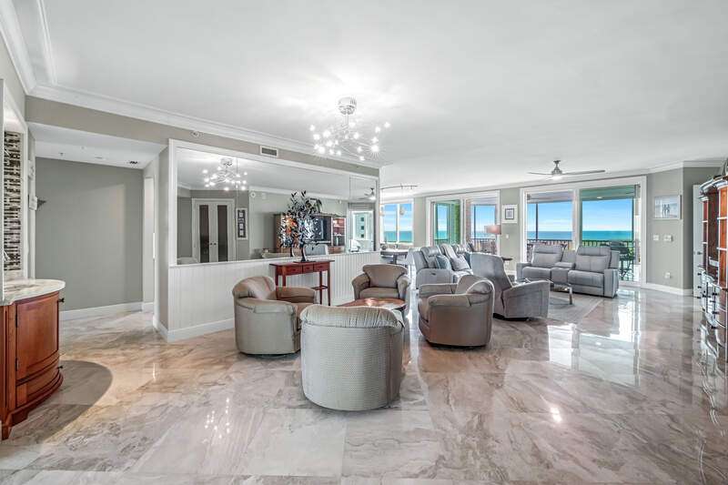 Rarely available 03 residence located in the Grande Phoenician. This luxurious sky home comes with a private Cabana. Enjoy the serene views of Turkey Bay, The Gulf and stunning sunsets. This spacious residence is in a gated tower with luxurious amenities and walking distance to one of Southwest Florida's most stunning beaches. Complete with ceiling heights of over 9 feet, a gourmet kitchen featuring a gas cooktop, quartz countertops, decorative stainless -steel side-by-side refrigerator, an under counter wine cooler, a large primary suite and a guest primary with an ensuite. The elevator opens directly into your spacious foyer. According to the developer brochure, all external windows comply with FLA 2002 impact-resistance requirements. This condominium does have the ability to have the Floridian Beach Club Membership. A shuttle service provides shuttle service to and from The Floridian Beach Club located on Vanderbilt Beach. The Dunes is a Premier Gated Coastal community managed by Troon that includes a tennis pro shop and lit tennis courts, pickleball, a state-of-the-art fitness center, food and beverage service around the resort-style pool, indoor and outdoor dining, tiki bar, and so much more.