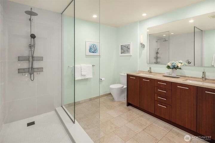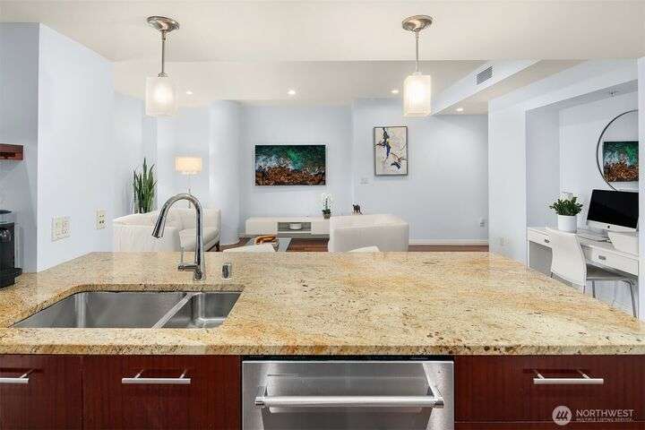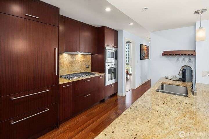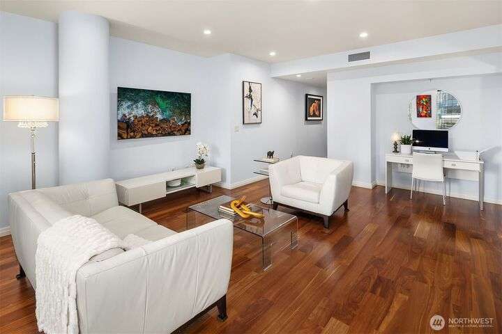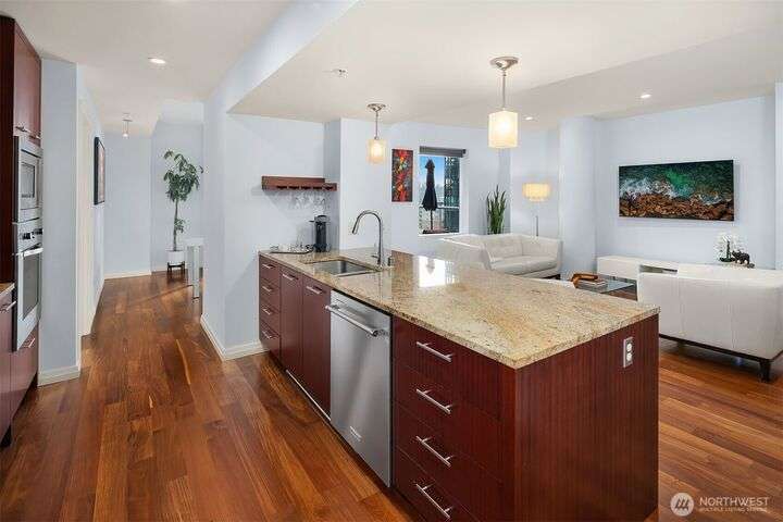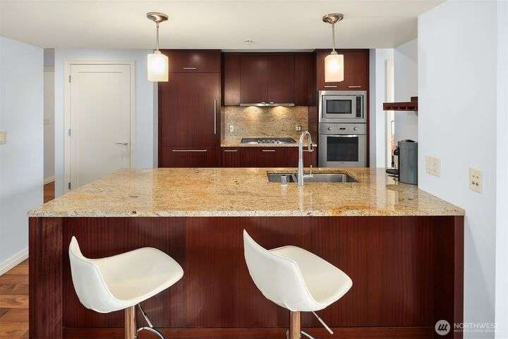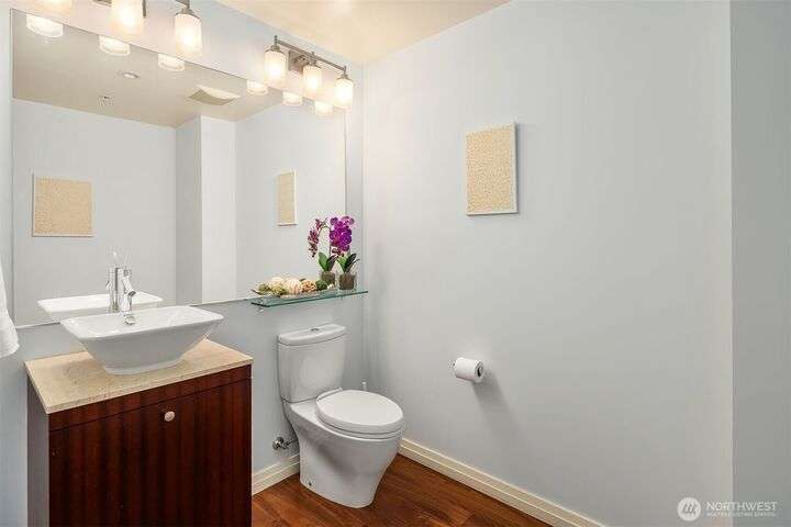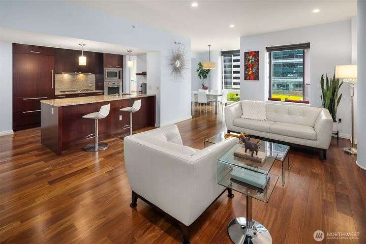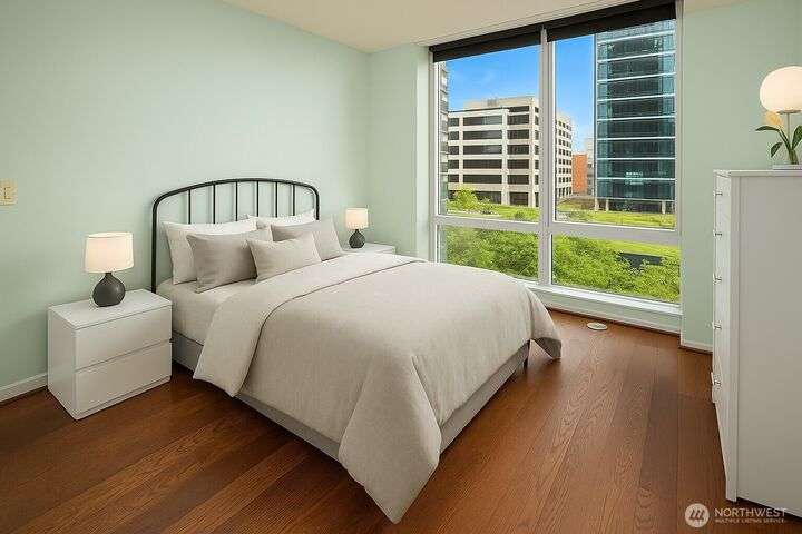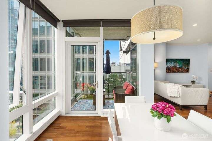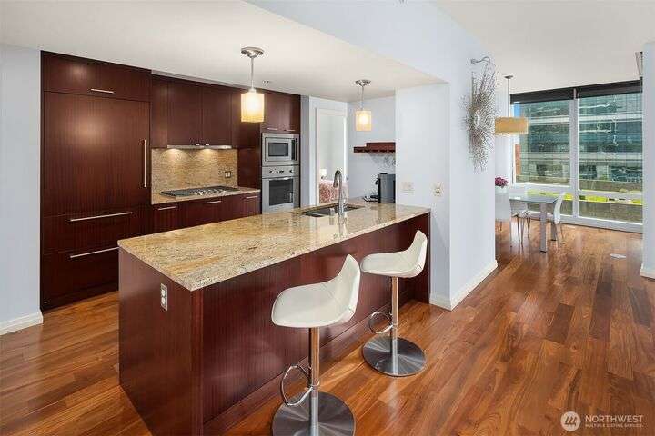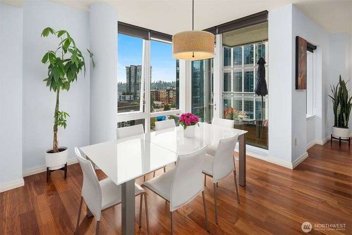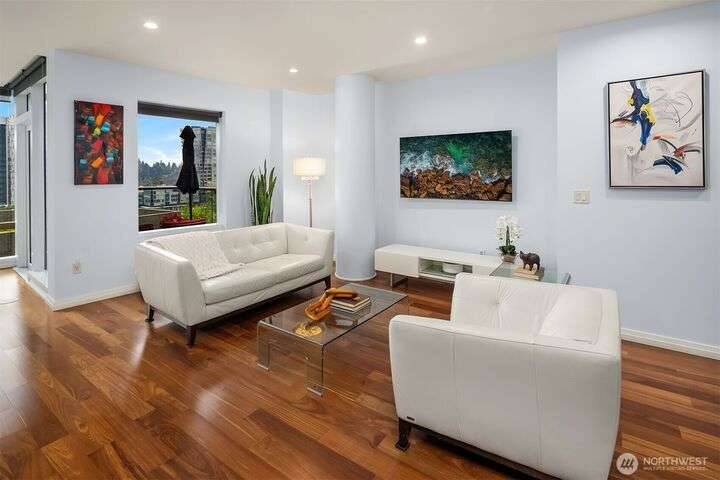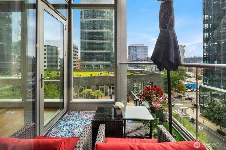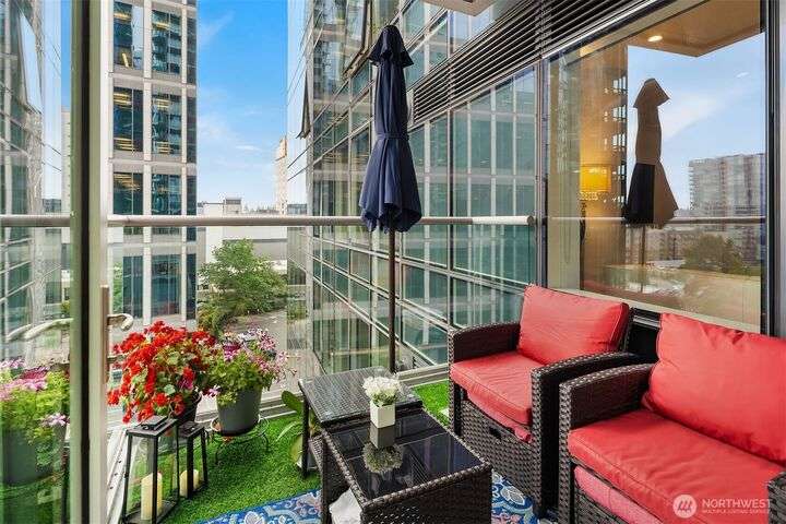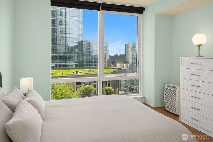 Experience luxury living in the heart of downtown Bellevue with this elegant one-bedroom, one and a half bath home at Bellevue Towers. This thoughtfully designed home features high-end appliances, sleek seamless cabinetry, and abundant natural light that highlights its sophisticated finishes. A spacious laundry room provides incredible storage or the flexibility to convert into a home office, fitness space, or creative nook. Relax and unwind on the private balcony. Serene views of the beautifully landscaped rooftop garden can be enjoyed from all living spaces. With its modern design, premium amenities, and unbeatable location, this condo offers the perfect balance of comfort, style, and convenience.