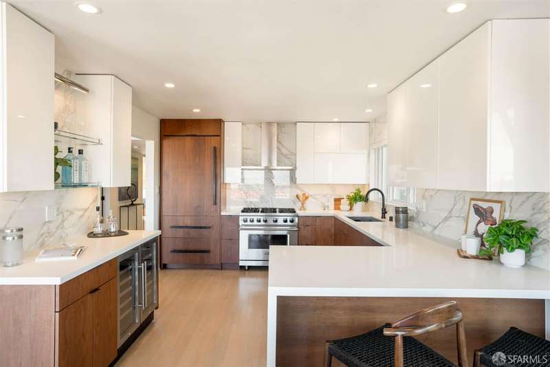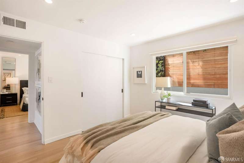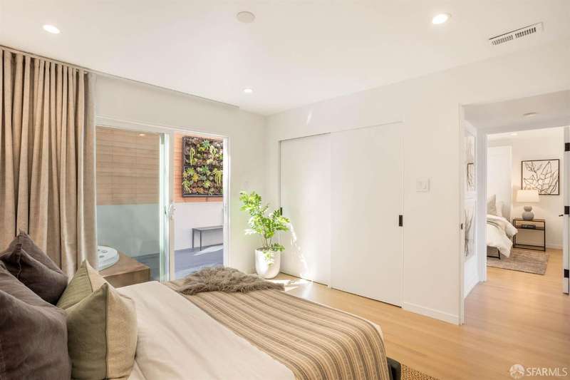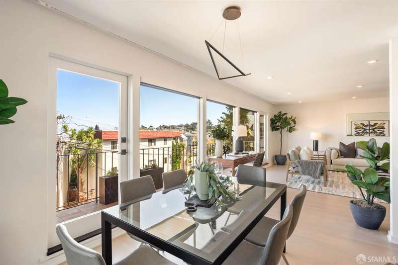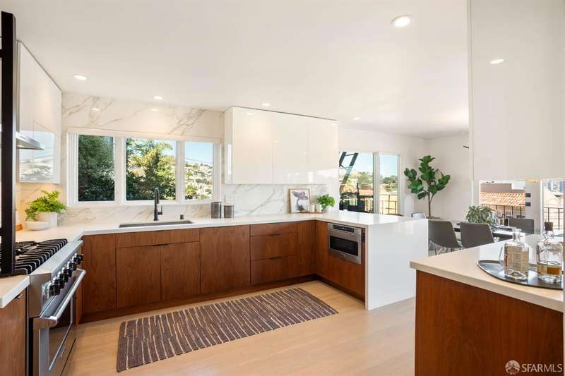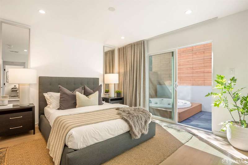 An exceptional condo located between Castro, Noe Valley, and Twin Peaks, with Kite Hill directly behind.This 2-bedroom, 2-bathroom unit features a panoramic window wall with stunning San Francisco cityscape views. The front deck spans the home's width, ensuring the open-plan living room, dining area, and kitchen are filled with natural light. The primary bedroom includes an ensuite bath and opens to a private, deeded patio. This outdoor oasis features a sitting area, hot tub, living wall, retractable canopy, and gate access to a common garden. Both bedrooms are generously sized and both bathrooms have been recently tastefully renovated. Situated on one story above a dedicated one-car garage, the property also includes additional loft storage, a dedicated laundry area, and an EV charger. There is a potential second parking spot available on the driveway. This stylish home offers a desirable alternative to a single-family home. It is also walkable to shops, restaurants, cafes, MUNI, tech shuttle stops, and parks. A must see!