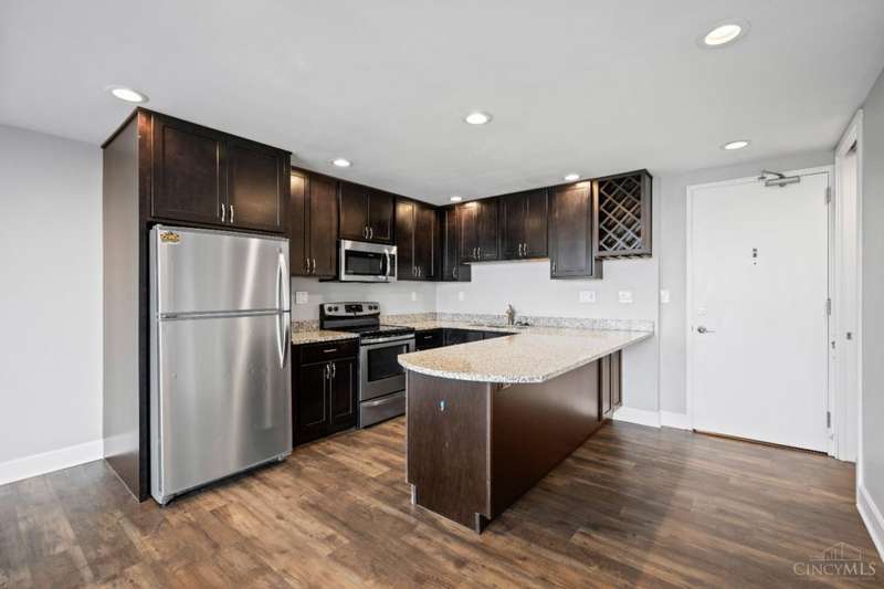 Completely updated unit with sweeping Incline District views at Queens Tower! Very nice open floor plan featuring massive windows, vinyl floors, tall ceilings and added recess lighting. Large updated kitchen w/ wood cabinets, granite counters, eat-in peninsula and plenty of storage. Full bathroom features include vinyl floors, granite counters and a large walk-in shower. Ultra convenient elevator building, in-unit laundry and gated parking lot. Enjoy some of the best views Cincinnati has to offer from your private pool, workout room or event space. Just a short walk to all of the restaurants, coffee shops, bars, theatre's and parks that this booming community has to offer!