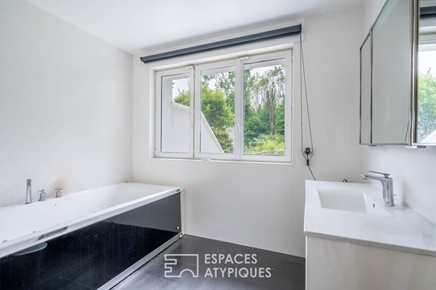 It is out of sight, in a very little exposed cul-de-sac on the quays of Marne, in the immediate vicinity of Nogent sur Marne and the RER A of Joinville le Pont, that this family house of 167 m2 of living space (193m2 on the ground).