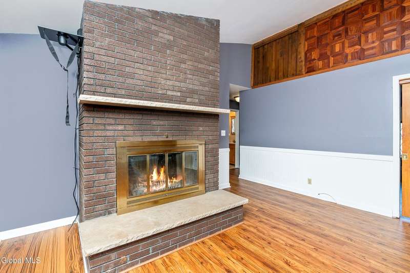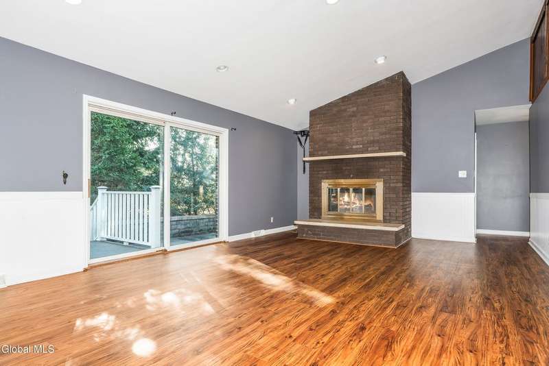 This inviting ranch home delivers the ease of single level living with a thoughtful layout ideal for today's lifestyle. Offering 3 bedrooms, 2 full ceramic tiled full bathrooms and convenient first floor laundry. The open living room & dining space features a vaulted ceiling and lovely wood burning fireplace. Flowing seamlessly into the well appointed kitchen with an island, double wall ovens and eat in area. Plus, there is an oversized two car attached garage and full basement with an additional garage door, perfect for storage or hobbies. Enjoy the charming front porch and a beautiful stone patio overlooking the backyard. Located close to area shops and restaurants. Available for quick close & immediate occupancy.
