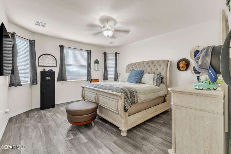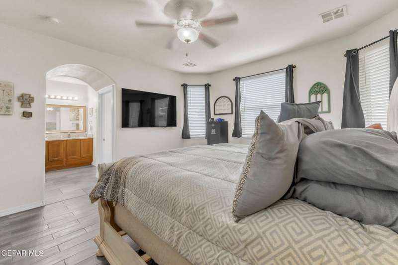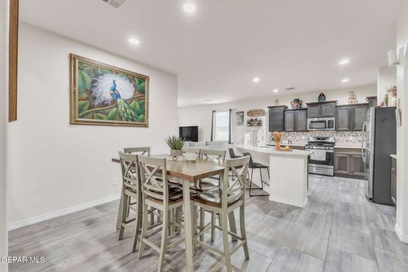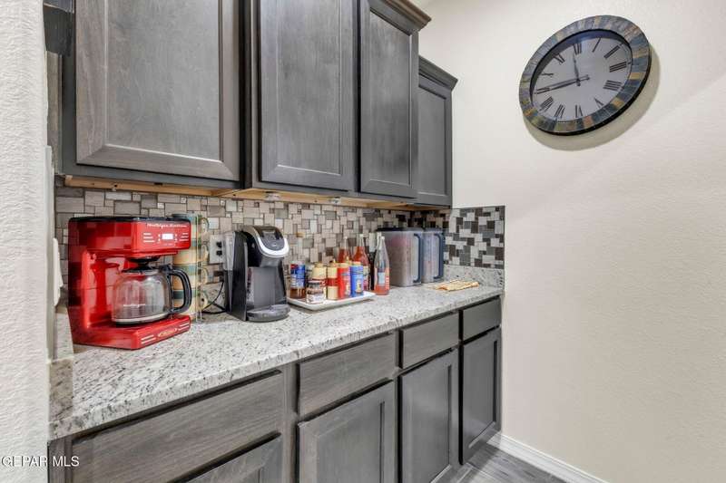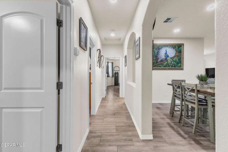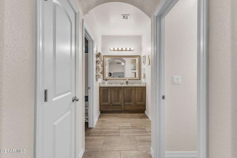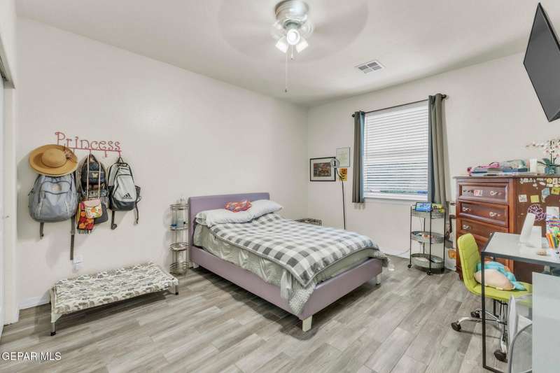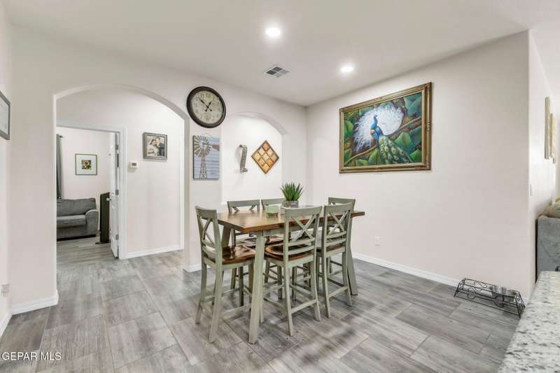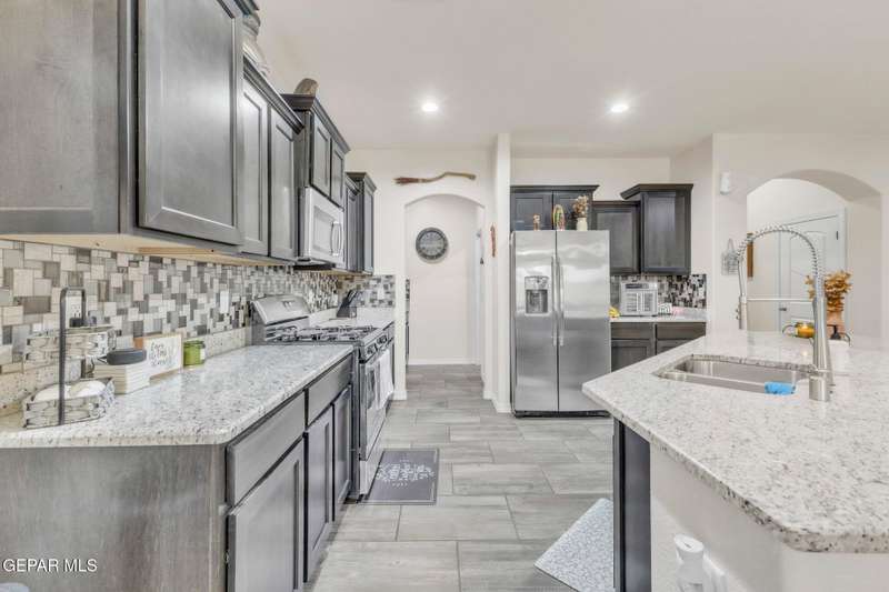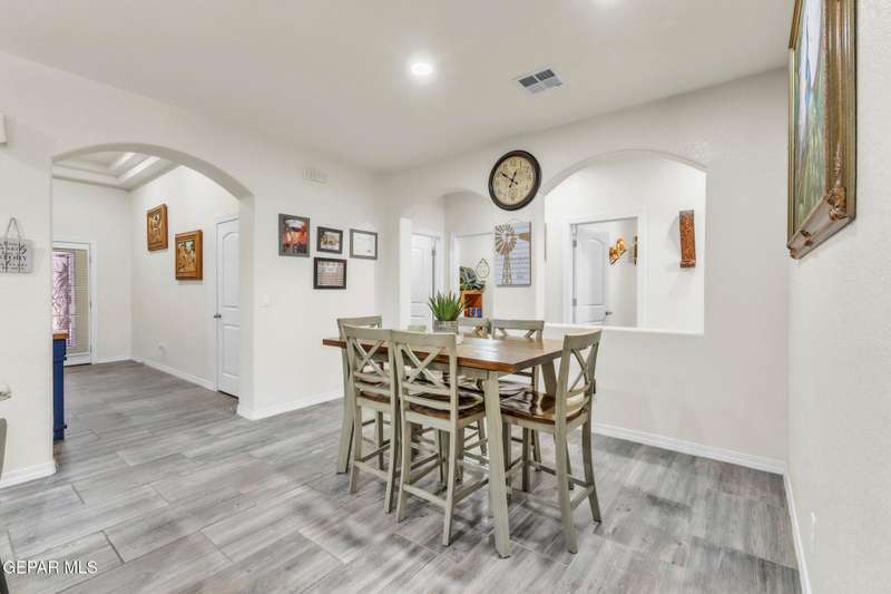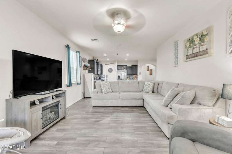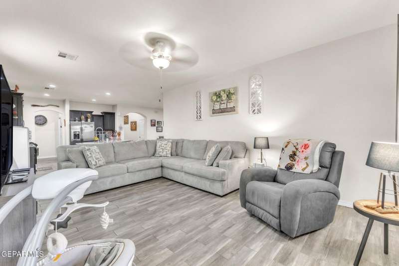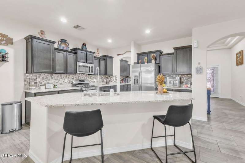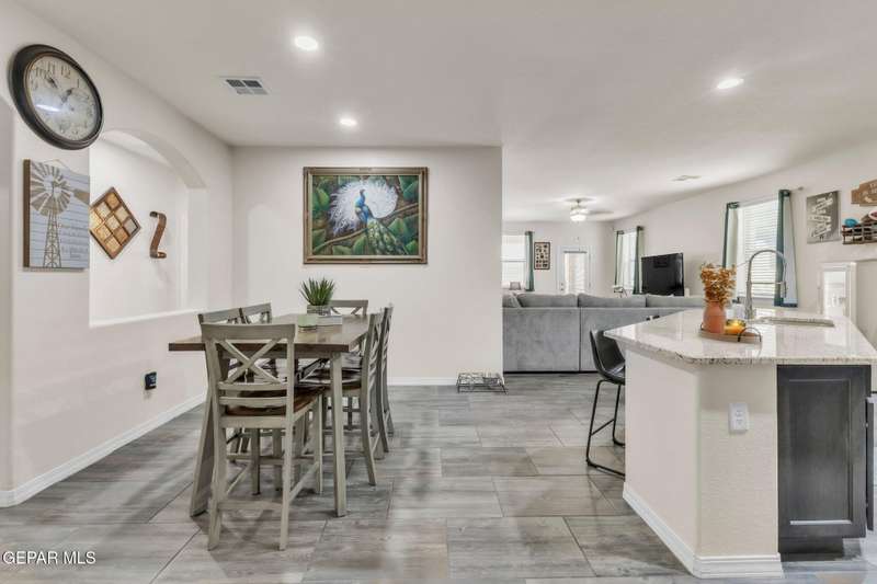 Just listed for $329,000 in the desirable La Puesta Del Sol subdivision! This well-maintained Carefree resale offers 1,921 sq ft, 4 bedrooms, 2 baths, and a spacious great room. No carpet throughout. Kitchen features a HUGE pantry, added counter space perfect for a coffee bar, and breakfast bar that seats 3. Covered patio with beautifully landscaped backyard-fully fenced for added privacy. Enjoy the charm and security of a gated front porch. Located in a quiet cul-de-sac with easy access to I-10 and Transmountain, plus close proximity to outlet shops, restaurants, schools, shopping centers, and just 2 minutes from La Puesta Del Sol Park. Includes a 2-car garage and great curb appeal. A must-see home in a highly sought-after neighborhood!