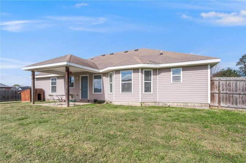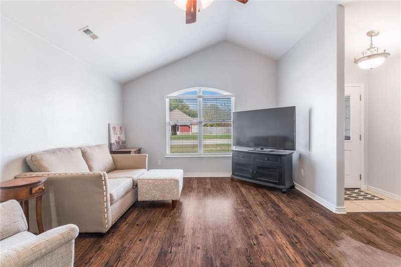 Charming 3-bed, 2 bath home minutes from everything Prairie Grove has to offer. This home offers an amazing updated split floor plan with a fresh coat of paint and new wood vinyl plank flooring through the main area and primary bedroom. From the entry way you are greeted with vaulted ceilings are tons of great natural light from all the windows. The kitchen has been updated with granite countertops and has upper and lower cabinets along with a pantry for all your kitchen storage needs. Step out on to the covered back patio to find an oversized fenced backyard. Sitting on a corner lot in a great neighborhood with a park for children, walking trails, and a dog park steps away. You will not be disappointed with this one!