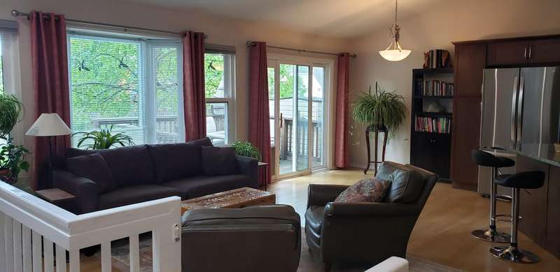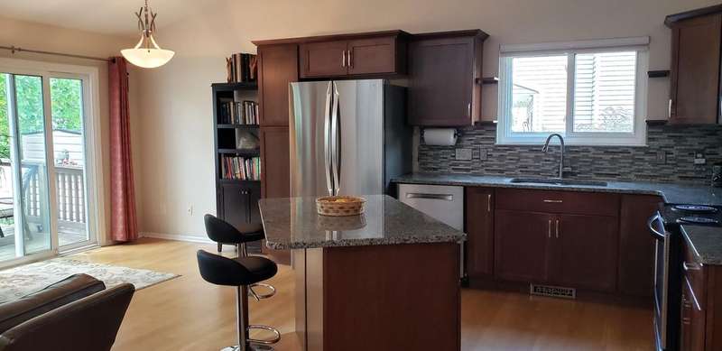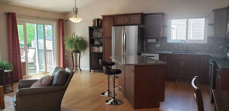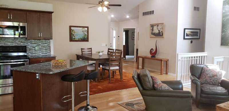 Beautiful open floor plan ranch with 4 bedrooms & many updates. Gorgeous kitchen cabinets, granite countertops, center island, tiled backsplash & SS appliances. Great room has vaulted ceiling, bay window & light oak flooring throughout main living area. 1st floor remodeled baths & laundry room. New carpet in 3 bedrooms & H2O tank in 2025. Kitchen sink drinking water filter system 2024. Privacy fence, furnace & refrigerator new in 2021. Doorwall off dining area leads to 12x10 deck (2015). Central air (2019), sump pump (2017), roof (2011), along with newer vinyl windows. Finished basement has 4th bedroom with egress window (2014), huge family room with recessed lighting, half bath & lots of storage space. Newer landscaping has nature lover theme with perennials, rain garden, river birch, cedar, pine, & white oak trees to name a few. Nice storage shed. Garage has 220 outlet