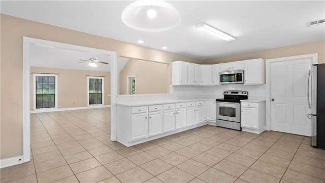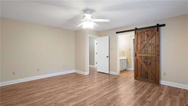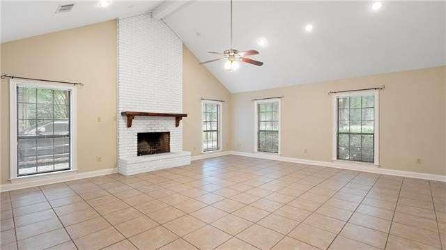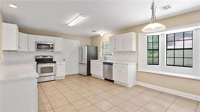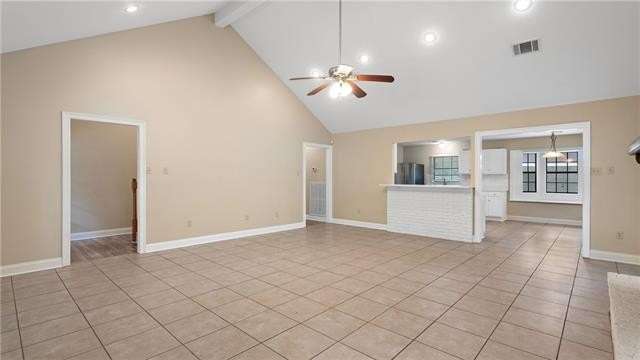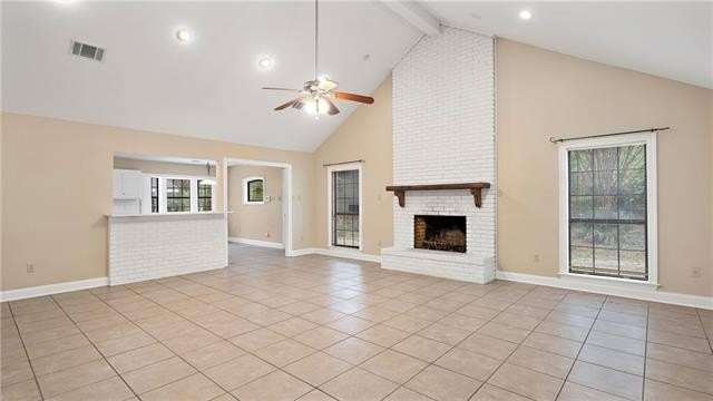 Great rental in a convenient location! This spacious home features a large den with vaulted ceilings and brick wood burning fireplace that opens to the kitchen and dining area. The kitchen features Quartz countertops and stainless appliances including the refrigerator. There are 4 bedrooms (one is upstairs) and three baths. The only carpet is on the stairs and upstairs bedroom which is large enough to be a bonus room. Fenced yard and large workshop.