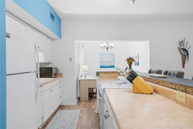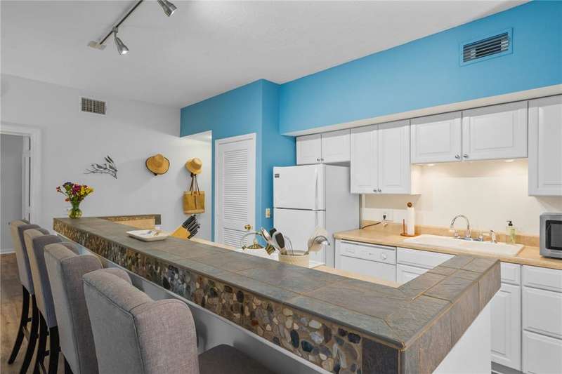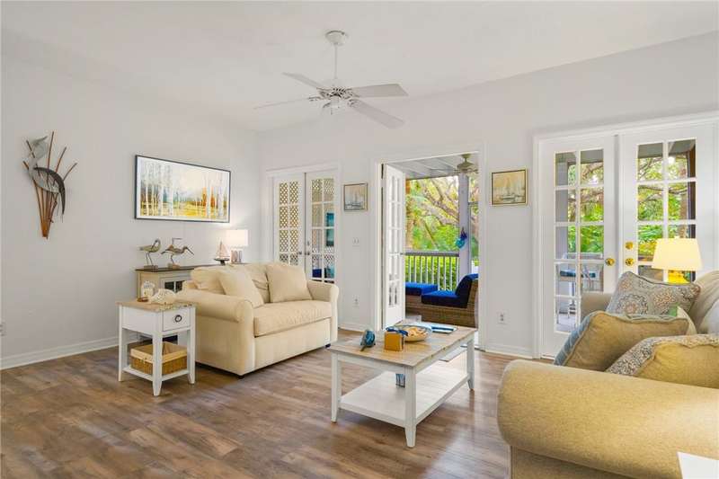 Rarely available first floor, prime location, tennis villa, rented til 12/31/2025. Immediate Income, then use for Season! Sold Fully Furnished/Turnkey. Featuring soothing coastal colors! seasonal getaway, investment property or full time home, this ticks all the boxes! Inviting open plan, with relaxing covered porch, freshly painted & CA closet! Steps to pool, tennis, & luxury oceanfront tiki bar, dining, pool, & beach! 1 small pet 20 pounds welcome. Private Club lifestyle awaits! Membership required. Sizes approx/subj to error.