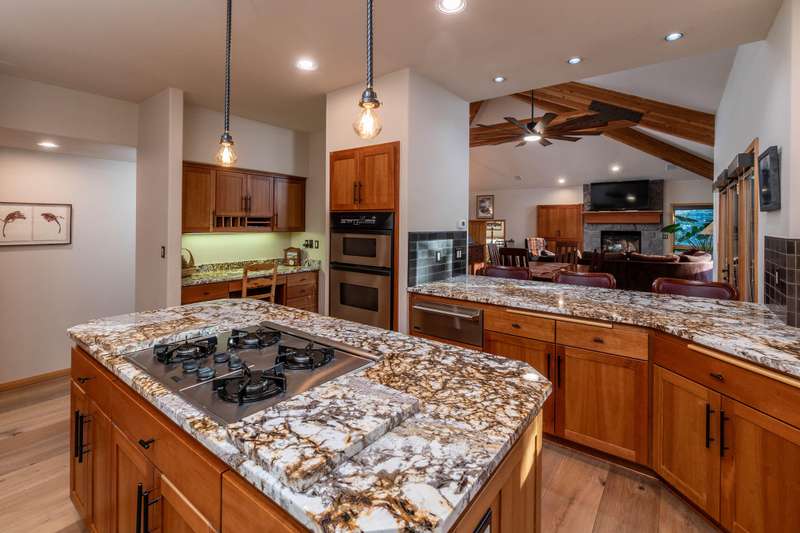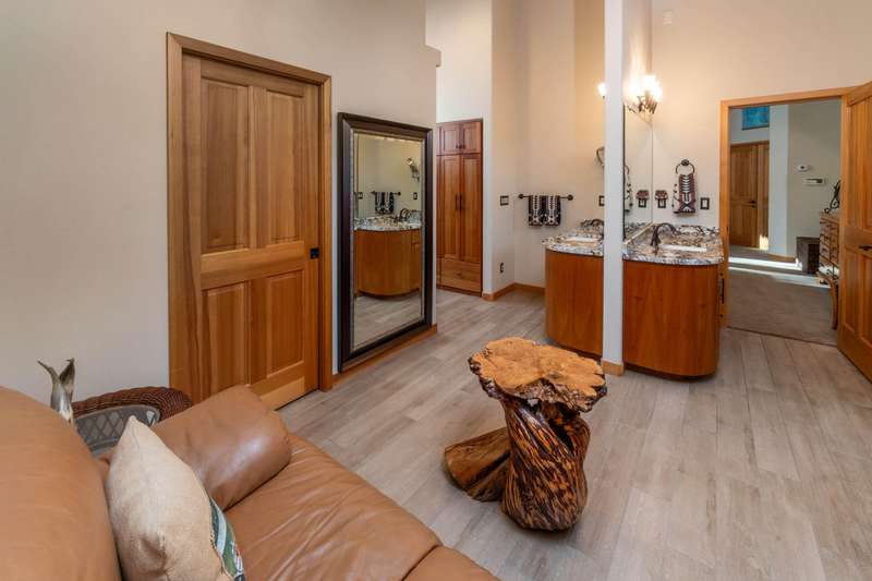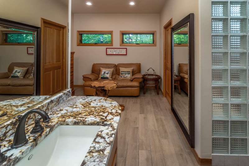 Nestled on a quiet cul-de-sac along the 18th fairway, this elegant single-level home offers luxury, privacy, and thoughtful design throughout. Step inside to find heated floors, wood-accented windows, and a spacious great room with a striking stone fireplace. The primary suite is a private retreat featuring a cozy fireplace, steam shower, double sinks, and French doors leading to the beautifully landscaped backyard. The additional bedrooms are located on the opposite end of the home, providing ideal separation and privacy. Enjoy year-round comfort with a built-in humidifier and fine craftsmanship in every detail. Outside, the paver driveway and back patio, tile roof, and meticulously landscaped grounds enhance the home's timeless appeal. A three-car garage provides abundant storage and convenience. Experience refined Awbrey Glen living—golf course views, single-level ease, and exceptional quality in one of Bend's most desirable communities.