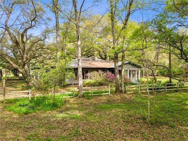 This is a golden opportunity to acquire a storied St.Tammany property. Cottage is in need of both cosmetic renovating and structural repairs. This historic cottage was the original "Bootlegger's" property for which Bootlegger Road was named. This is an amazing piece of St. Tammany history! The 10 acre parcel is a lovely mix of open pasture and land which is heavily treed with majestic ancient oaks that have reigned for 350-400 years. Absolutely stunning! For the equestrian enthusiast, the open pasture land provides space for horses to roam and graze, and there is plenty of room for a future barn. Or...perfectly configured for the addition of a second main home and keep the cottage as your oh-so-charming guest house! The cottage, which dates to c. 1900, was originally a double shotgun style, and features a center hall with a free standing fireplace, with a lovely sunroom addition on one side and bedrooms on the other. The country kitchen is an ample size with plenty of room to gather. The home features original wood flooring (owner believes wood flooring is under the bedroom carpets), wood detailed ceilings, and an abundance of windows to enjoy the spectacular views. A wrap-around veranda beckons you to sit and enjoy the peaceful, serene surroundings. Flood Zone C per mls flood map. Conveniently located just minutes from Covington and all it has to offer!