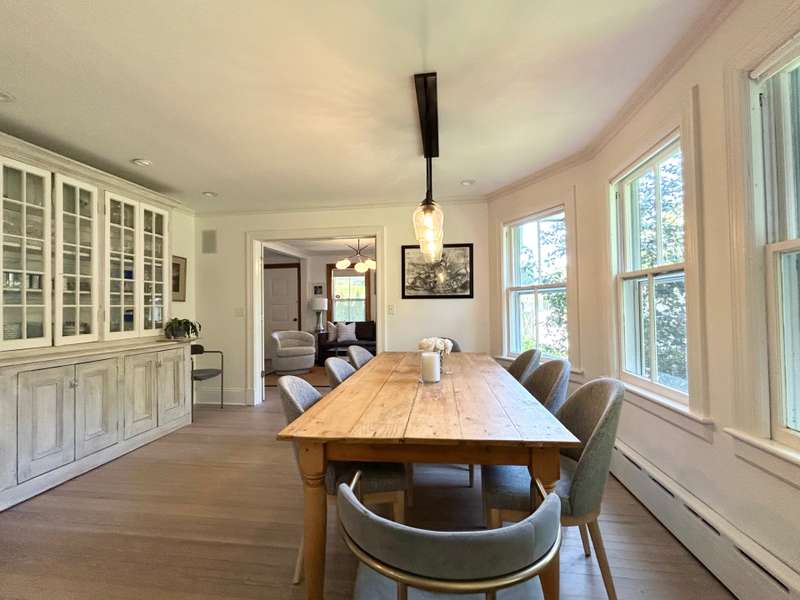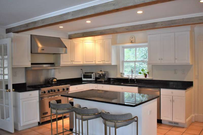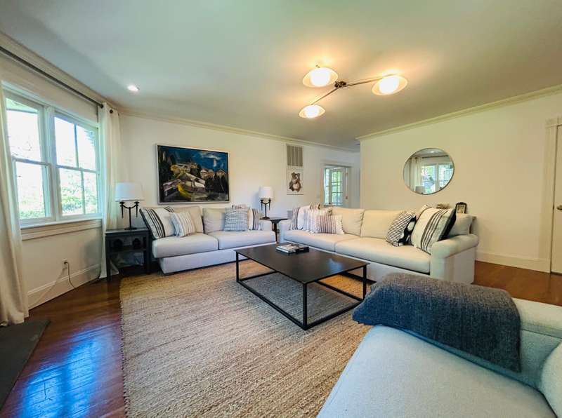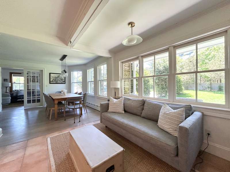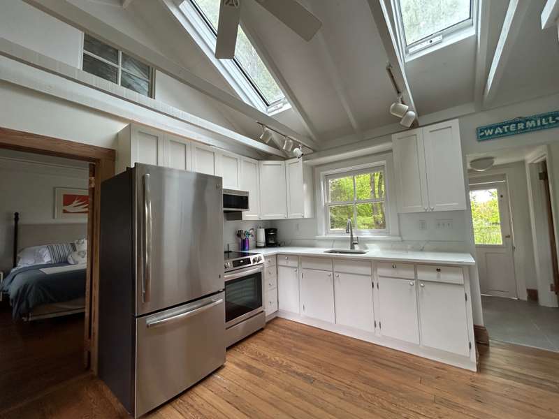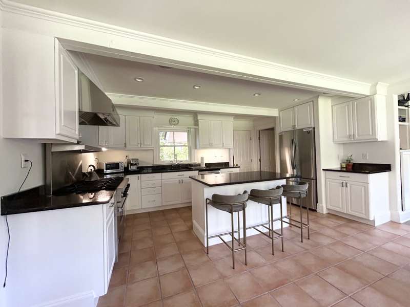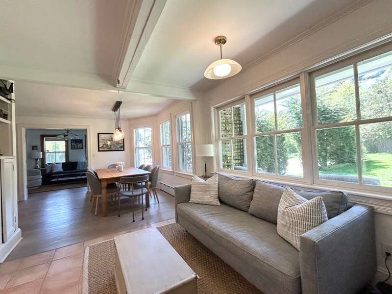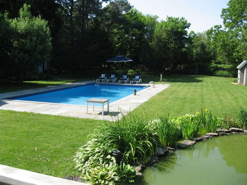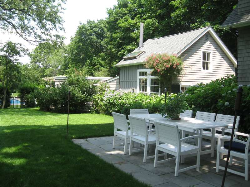 RR# RP200274. Enjoy your summer in this fabulous Water Mill compound close to the village and beaches. The two story main house features a spacious eat-in kitchen, separate dining room, cozy living room with fireplace and separate sitting area. There is a junior master bedroom suite on the first floor for convenience. In addition to a master bedroom suite on the second floor, there are three more generous bedrooms and two baths upstairs. The country cottage on the property boasts a comfortable living room, full kitchen with breakfast area, full bath, and bedroom with a king bed. The cottage has its own private yard with patio. The compound also includes a separate studio/pool house with a living room, half bath, kitchenette, and sunroom. The property sits amidst lush landscaping with ponds and heated pool. Listing ID: 879074