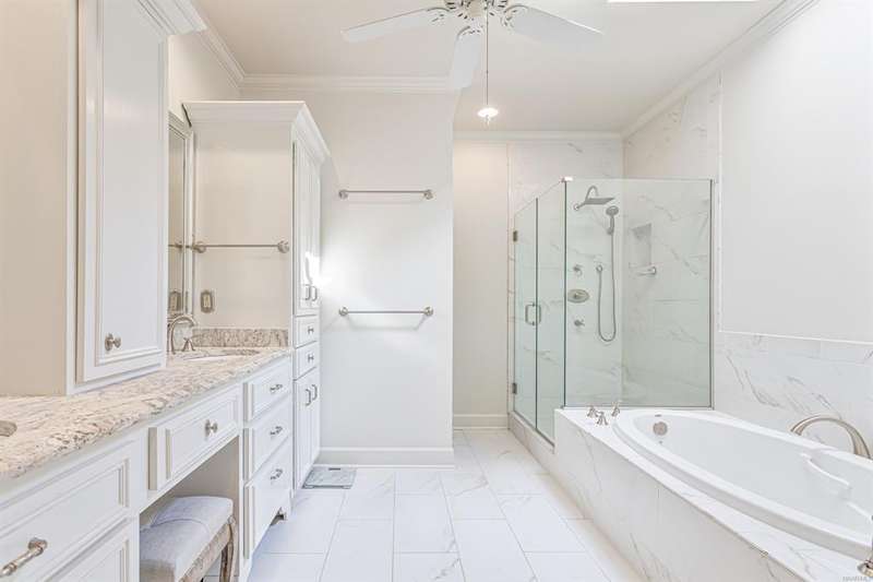 BEAUTIFULLY UPDTED home in WYNLAKES, a GATED COMMUNITY. The open floor plan features tall ceilings, crown molding and lots of storage, living room and dining room and family room. Landscaped grounds with flagstone walkway, fountain, arbor with bench, separate garden area for special flowers or vegs. Main bedroom and bath on main level situated away from entertaining areas and features trey ceiling, French doors with plantation shutters overlooking back yard provide great natural light, bath offers a walk in closet with custom shelving and a second closet, an oval soaking tub, glass shower, double vanity, granite counter tops, custom cabinets. Upstairs are 2 bedrooms, connecting bath each with private vanity areas and separate shared toilet and tub with shower. Also upstairs is a bonus area with ceiling to floor bookcases ,storage cabinet, perfect for home office or study area. 2 bedrooms feature walk in closets, one has door to walk-in attic. Family room with beautiful masonry fireplace and bookcases with storage cabinets below. Monthly average utilities: Water 124.19, Gas 52.64, Electricity 154.76.Updates include: Roof 2025, Interior & Ext. painting 2025, foam insulation 2017, HVAC upstains 2025, downstairs 2016, tankless gas water heater 2022, main level wood flooring 2025, upstairs carpet 2025, epoxy garage floor 2025. Other amenities incl. sprinkler system, plantation shutters thru out, updated stainless steel kit appliances. Built in linen cabinets up and down, 2 remote thermostats, Double oven is electric. Professional photos to follow soon.