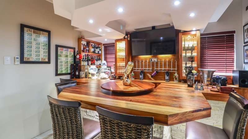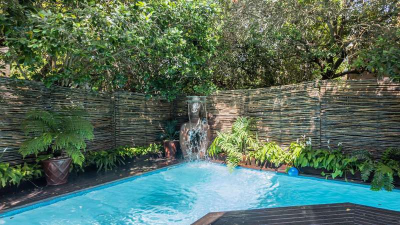 Discover the epitome of elegance in this exclusive four-bedroom, four-bathroom home located within the prestigious Wilderness Garden Estate, just 100 meters from the beach. A true entertainer's dream, this high-end property offers spacious living with premium amenities for a refined coastal lifestyle. Sold with the furniture included (With exception of a few personal items). Key Features: Ground Level: A modern, entrance hall with lovely staircase and chandelier leading to the first floor. A spacious, open plan kitchen with separate scullery, flows seamlessly into a stylish living area with cozy dining room and lounge, opening on both sides onto a wooden deck, with a beautifully manicured garden and heated swimming pool with a tranquil waterfall feature. A lovely Ladies Bar, leading out onto the deck, with built in braai. Two guest bedrooms with access to a well-appointed bathroom. Double automated Garages The first level offers: A large main bedroom with en-suite bathroom. Built for privacy, this room opens onto a deck with stairs leading up to a roof top terrace. A second bedroom with en-suite bathroom boasts its own patio. A second lounge/TV room with coffee station and small kitchen, leads out onto a large deck area, with Jacuzzi, ideal for entertaining. A Glass Sunroom retreat with en-suite bathroom, perfect for cozy winter days, this can serve as an additional bedroom or a peaceful relaxation space. Staircase to the stunning rooftop terrace with sea view. The perfect spot for sundowners with the sound of the waves in the background. There's more: Inverter 5.5kw batteries Outside shower Thatch roof with fire protection Plastered ceilings & Bulk Heads Cul-de-Sac, for privacy This exceptional home in a sought-after Estate, combines style, comfort, and unmatched location, offering you the ultimate coastal lifestyle. Contact me for a viewing