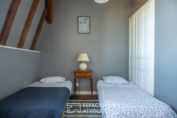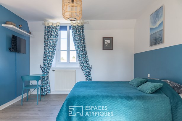 Upstairs, the landing leads to a real apartment offering on one side a living room of 60 sqm with open kitchen, a bedroom with shower room, then a sleeping area composed of two bedrooms with shower room.