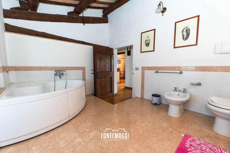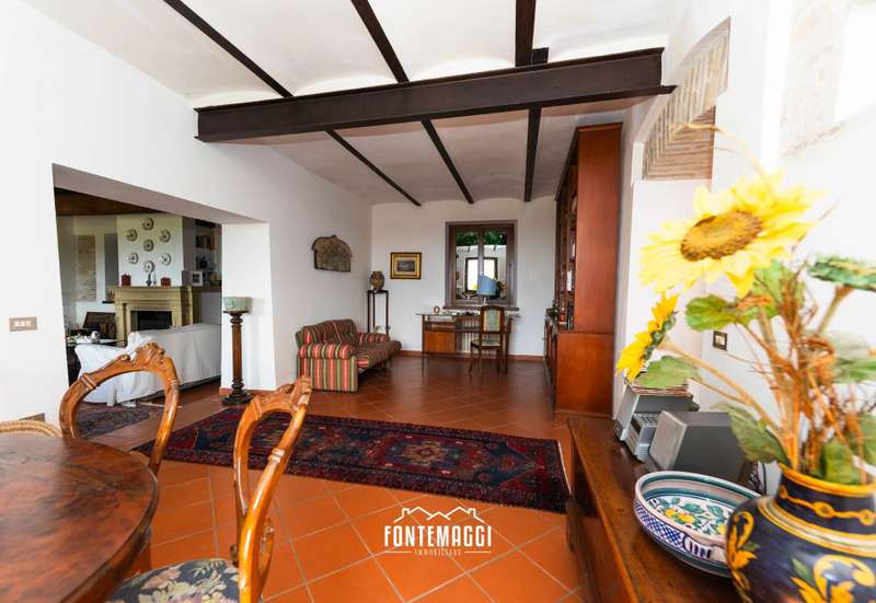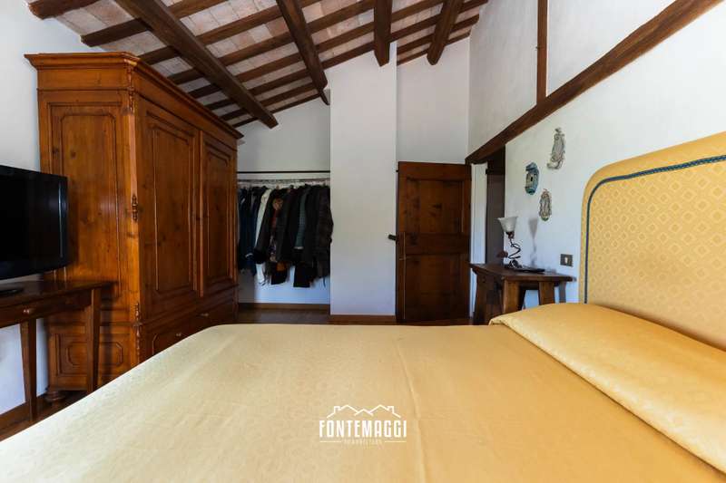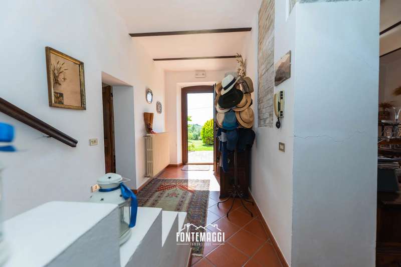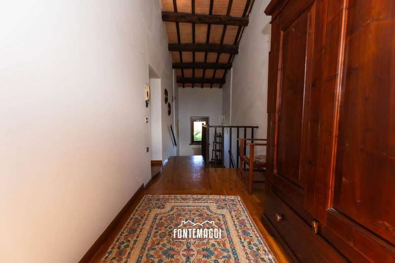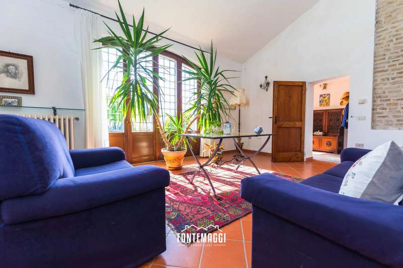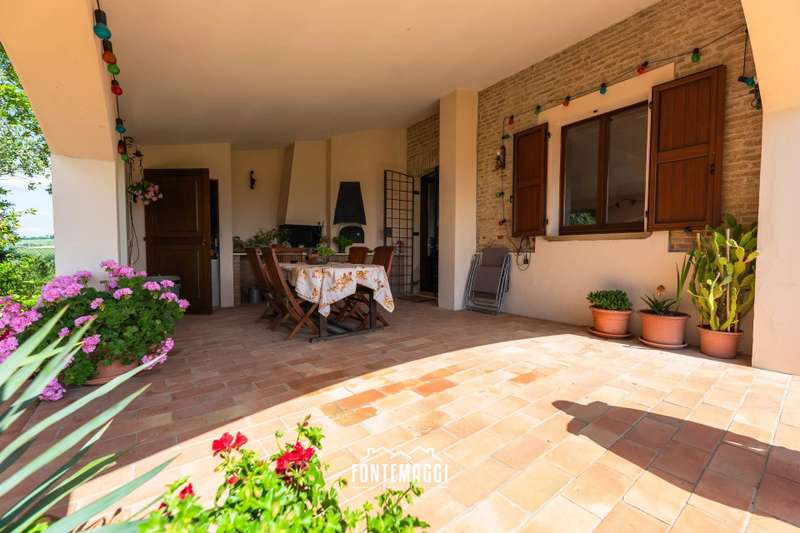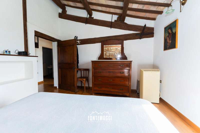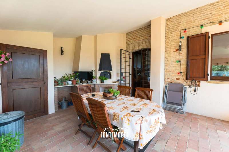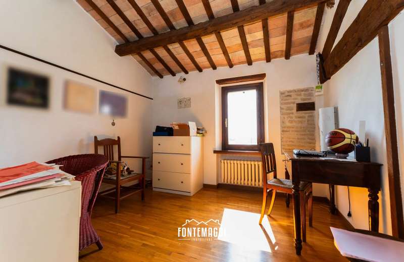 San Costanzo (PU). Nestled in the hills of the Marche region, in a panoramic and easily accessible position, well connected to the main roads. We offer for sale elegant 430sqm farmhouse completely renovated in 1994 with 120sqm accessory and fenced park of 5,000sqm. The property is developed on two floors: On the ground floor, the living area is characterized by large and bright rooms, the eat-in kitchen overlooks the porch with wood stove, the main living room with fireplace is illuminated by the large windows overlooking the garden, completes the floor a second living room with fireplace and exit to the porch, a service bathroom and the pantry. On the second floor, the sleeping area with original exposed beams consists of six comfortable bedrooms, the representative bathroom and a second bathroom with shower. All surrounded by a fenced park of 5,000sqm with a well and an accessory of 120sqm used as a garage. The property has been completely renovated preserving the original materials, is in excellent overall condition, elegant and beautifully finished. Always used as a second country house, it needs some routine maintenance work. The property is ideal as an accommodation facility / B&B activity, but also as a main residence or second home. Request: € 970.000 "APE G" IPE: 123 kwh/sqm/year