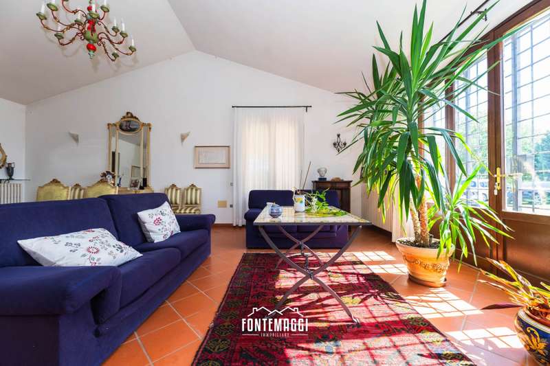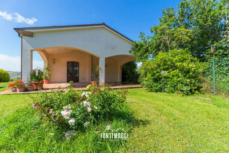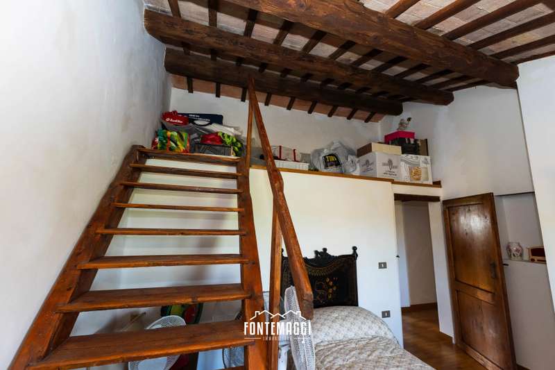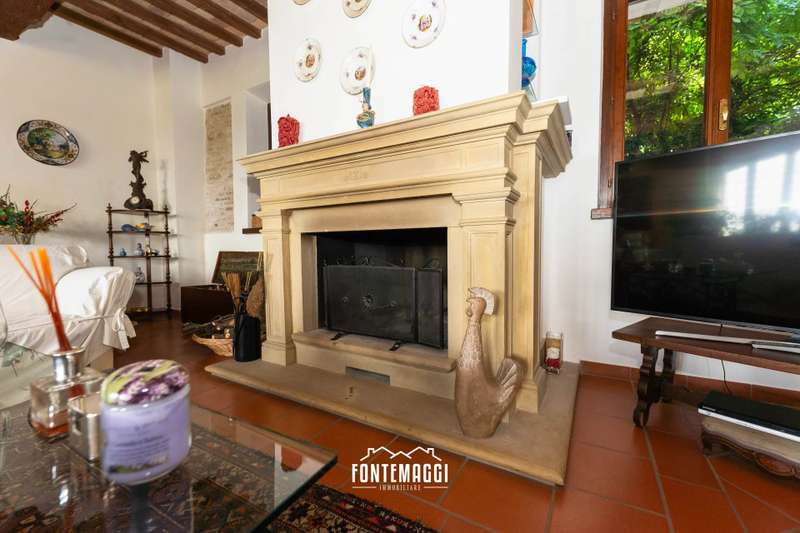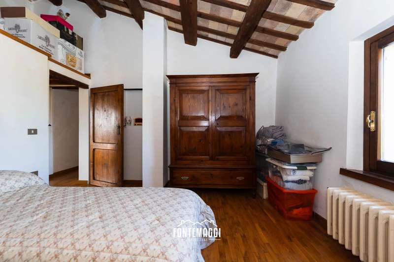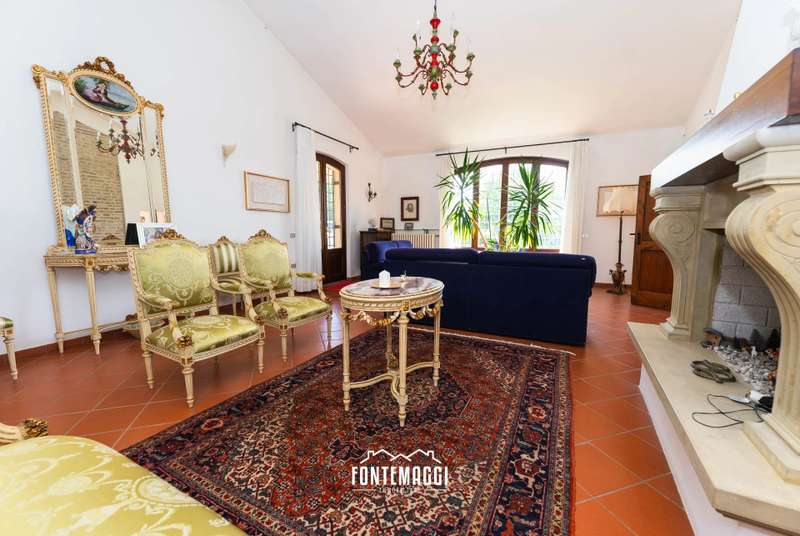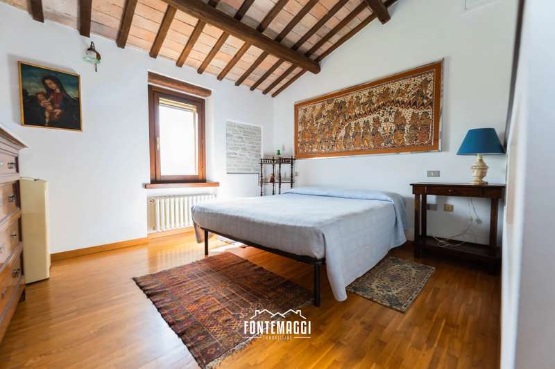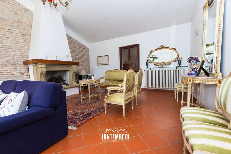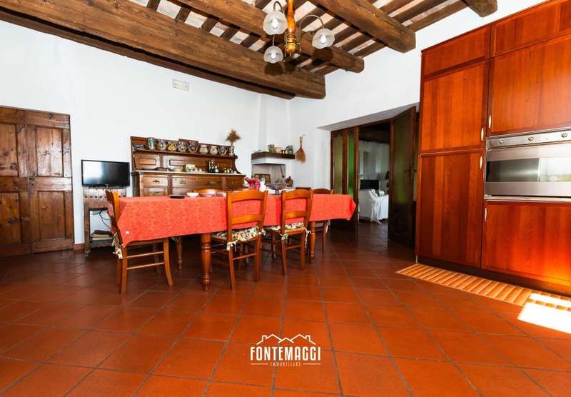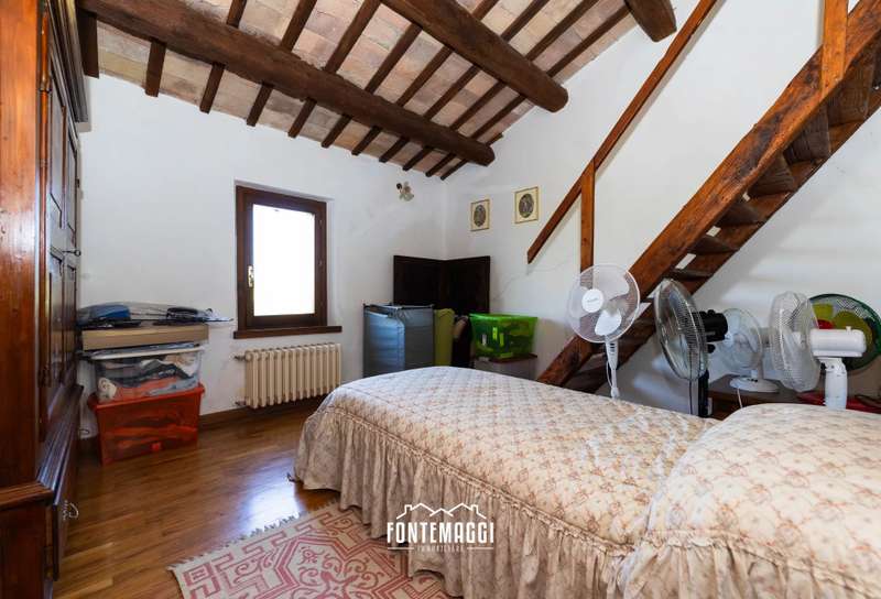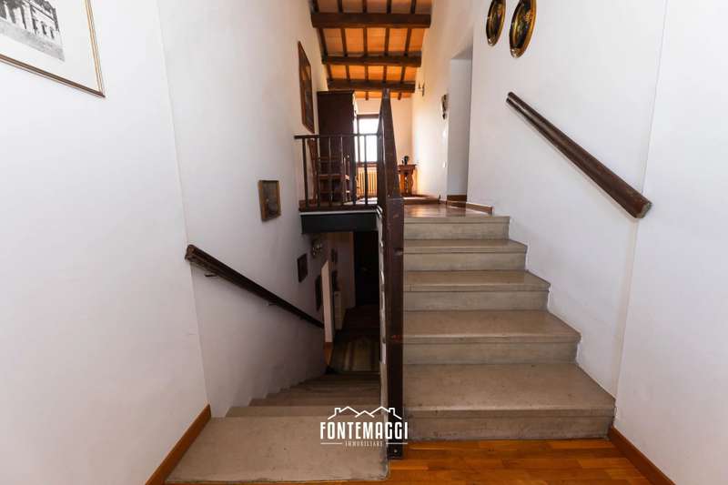 San Costanzo (PU). Nestled in the hills of the Marche region, in a panoramic and easily accessible position, well connected to the main roads. We offer for sale elegant 430sqm farmhouse completely renovated in 1994 with 120sqm accessory and fenced park of 5,000sqm. The property is developed on two floors: On the ground floor, the living area is characterized by large and bright rooms, the eat-in kitchen overlooks the porch with wood stove, the main living room with fireplace is illuminated by the large windows overlooking the garden, completes the floor a second living room with fireplace and exit to the porch, a service bathroom and the pantry. On the second floor, the sleeping area with original exposed beams consists of six comfortable bedrooms, the representative bathroom and a second bathroom with shower. All surrounded by a fenced park of 5,000sqm with a well and an accessory of 120sqm used as a garage. The property has been completely renovated preserving the original materials, is in excellent overall condition, elegant and beautifully finished. Always used as a second country house, it needs some routine maintenance work. The property is ideal as an accommodation facility / B&B activity, but also as a main residence or second home. Request: € 970.000 "APE G" IPE: 123 kwh/sqm/year