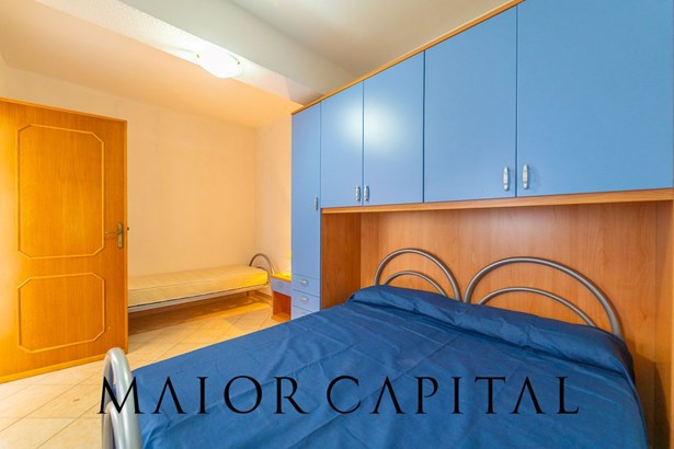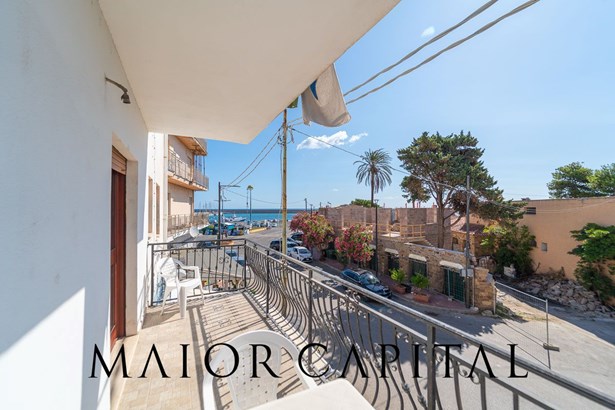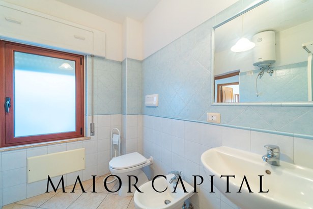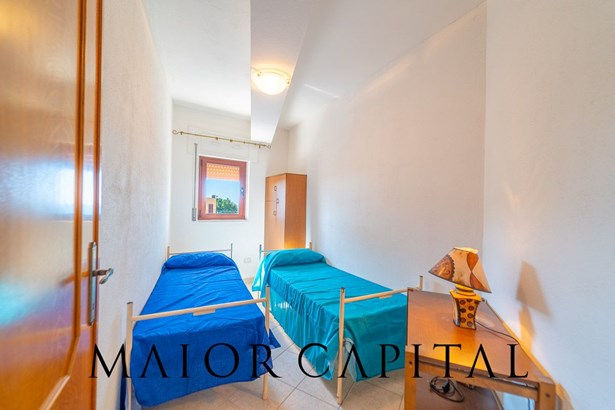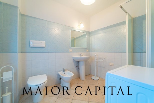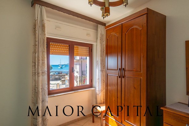 The sleeping area is well separated from the living area to ensure maximum privacy and living comfort. It includes a spacious double bedroom, with the possibility of inserting an additional bed, a second bright twin bedroom, enriched by a window with a suggestive view of the sea, and a third room, also a twin bedroom, extremely versatile: perfect to be used as a study, walk-in wardrobe or play area for the children. The sleeping area is completed by two windowed bathrooms, both with shower, finished with care and designed to offer functionality and well-being in daily life. At the rear of the dwelling, a convenient service courtyard represents a reserved space, ideal as a laundry or outdoor storage room.