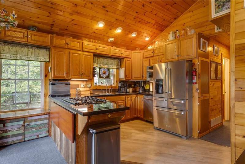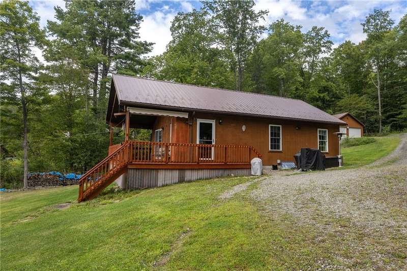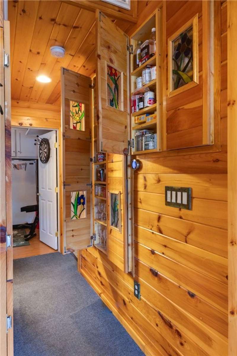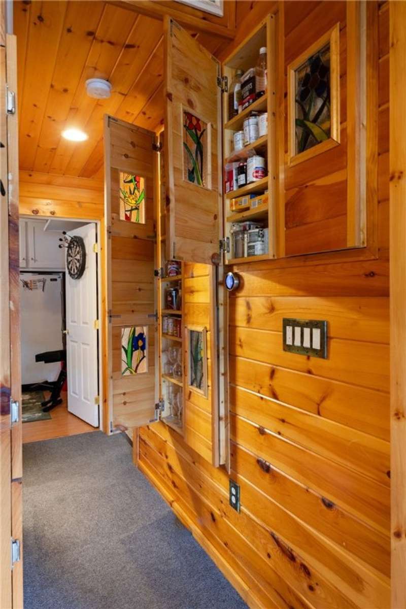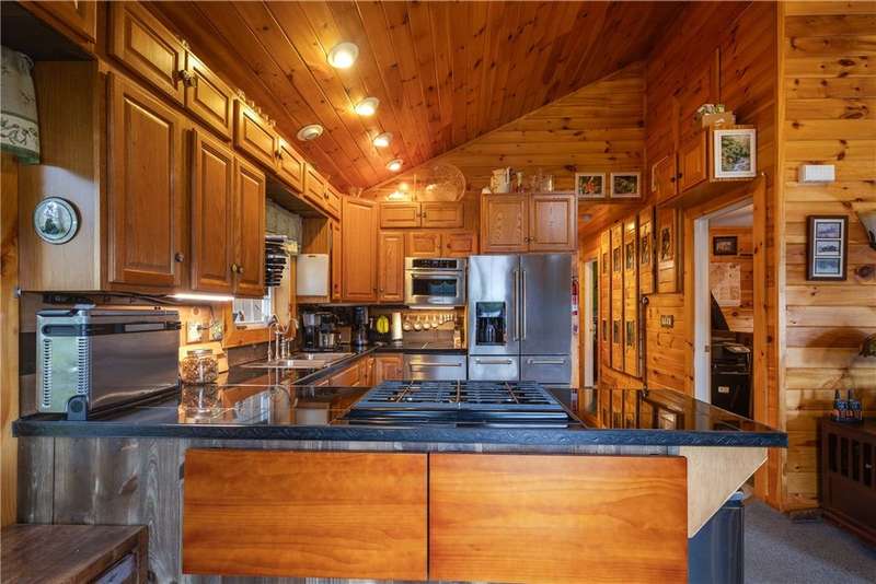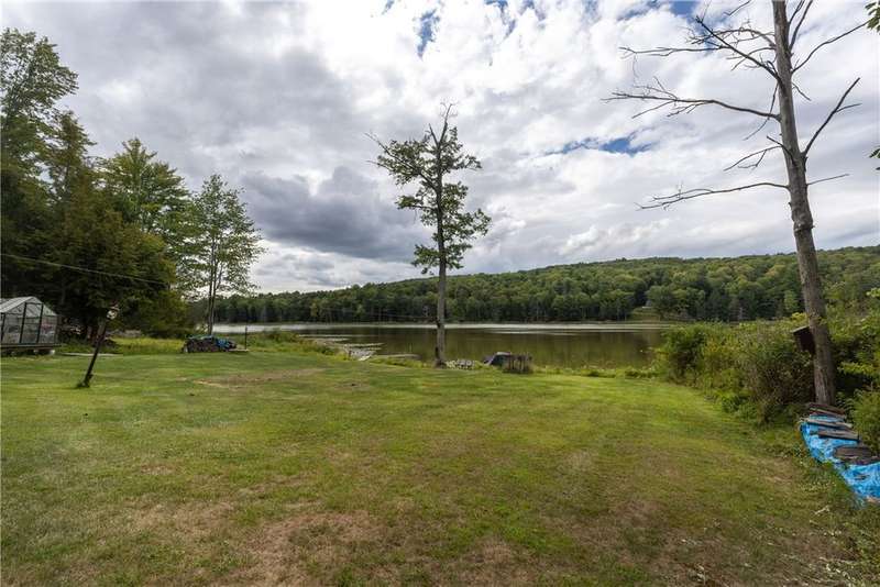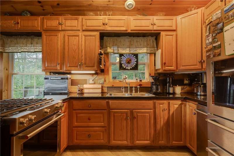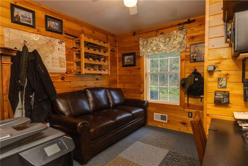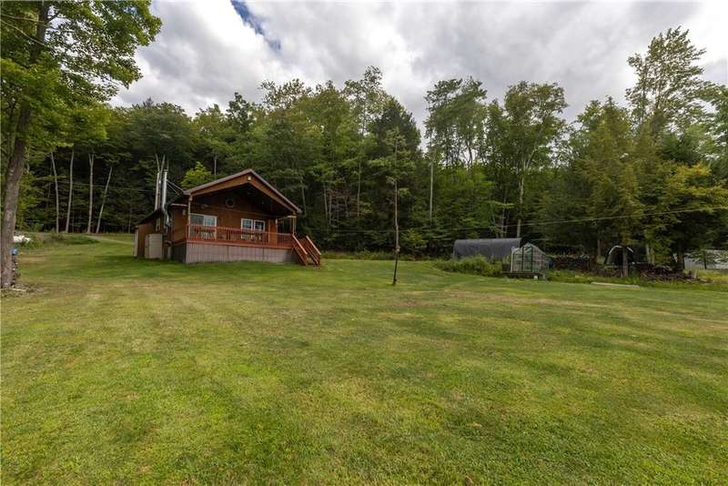 Year-round cabin retreat on a private lake in the desirable Tanglewood community! The main living area features an open-concept design with a newly updated kitchen, newer stainless steel appliances (3 years), and cabinetry with convenient roll-out shelving. A custom-built collapsible table/island adds function and charm.The home is equipped with a propane gas furnace (3 years old) with a humidifier and fan filtration system, a wood-burning stove, and even a makeshift central vac system. A whole-house automatic generator provides peace of mind, while the porch is enhanced with a retractable awning and shade for relaxing lake views. Water systems include a rented Culligan softener and an owned reverse osmosis system.Outside, you'll find a detached 2-bay garage?one side transformed into a heated and cooled "band" or hangout room with a refrigerator. Additional storage abounds with 3 collapsible ShelterLogic units, a shed, and a greenhouse. All of this on 5 acres.