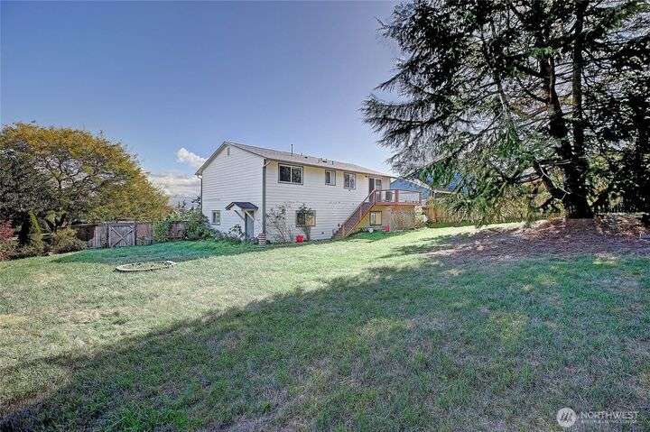 Welcome to this spacious, updated home on a large corner lot just minutes from downtown Oak Harbor, NAS Whidbey, and local amenities. Enjoy peekaboo views of Oak Harbor from the bright, oversized Living Room. The interior feels fresh & inviting with new paint, painted trim & cabinets, lighting, and flooring throughout. The Kitchen features newer appliances, a large Pantry, Dining area and a slider leading to a generous deck, perfect for entertaining and overlooking the fully fenced backyard. The flexible layout offers a main-level or upstairs Primary Bedroom both w/ Ensuite Baths. Tons of storage. Attached 2 car Garage. Originally a split-level, it's now a two-story home full of potential in a desirable neighborhood and convenient location.